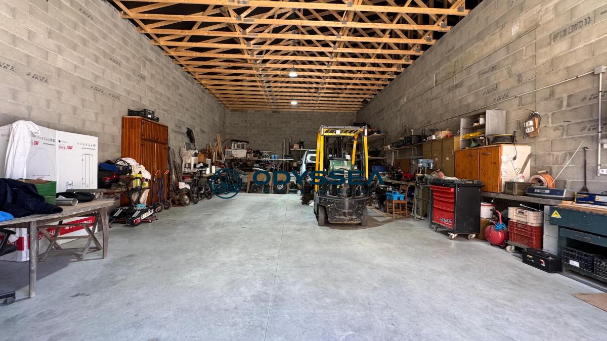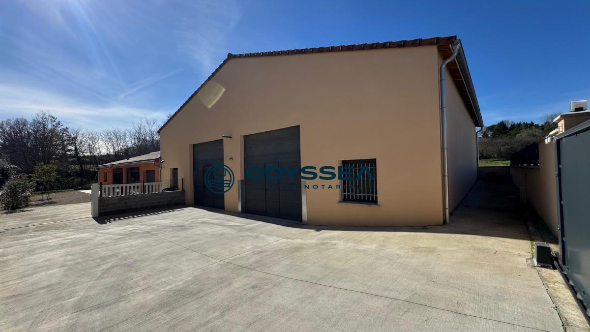 Implantée sur un terrain clos et arboré de 1 216 m², la villa dispose de deux hangars indépendants de 125 m² chacun, louables séparément, équipés de portes électriques, électricité et point d’eau, avec possibilité de les relier.