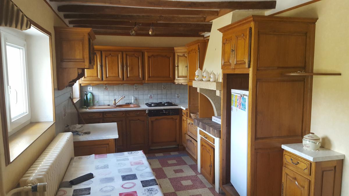 RDC : cuisine aménagée (plaque de cuisson Gaz), couloir, WC, salle d’eau, salle à manger, salon (cheminée insert tubée), cave,