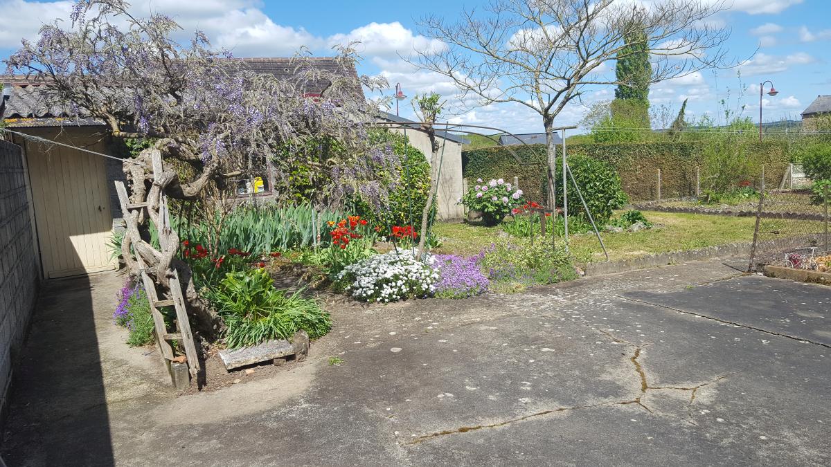 Jardin derrière avec abris débarras, garage à 20 m (environ 30 m² avec grenier au-dessus).