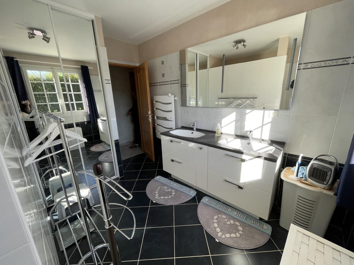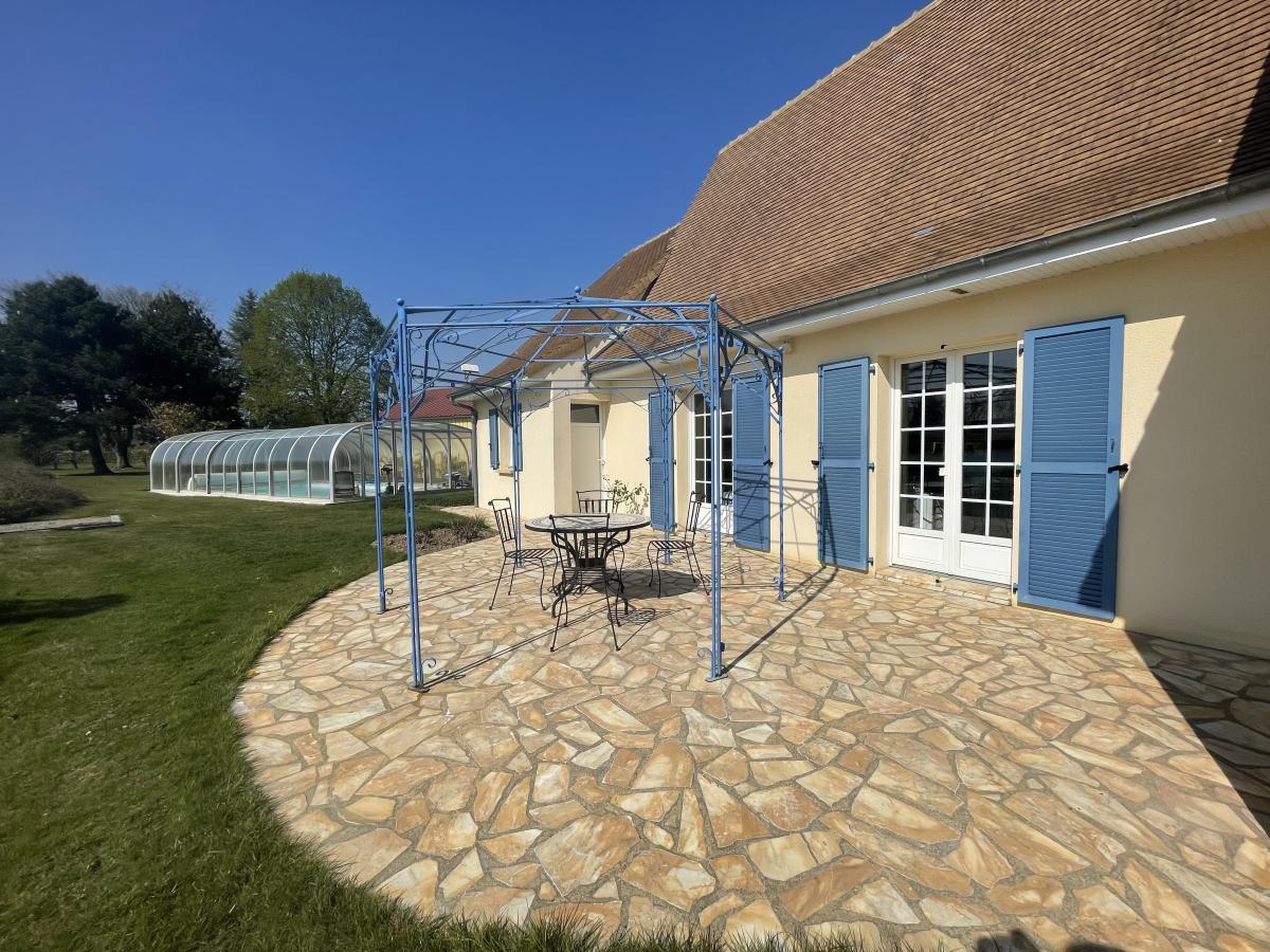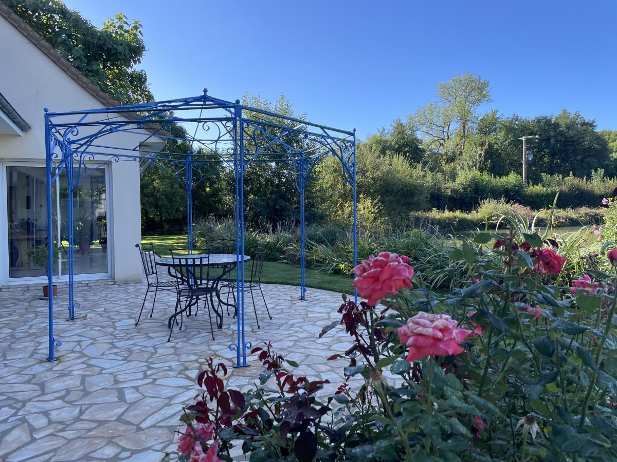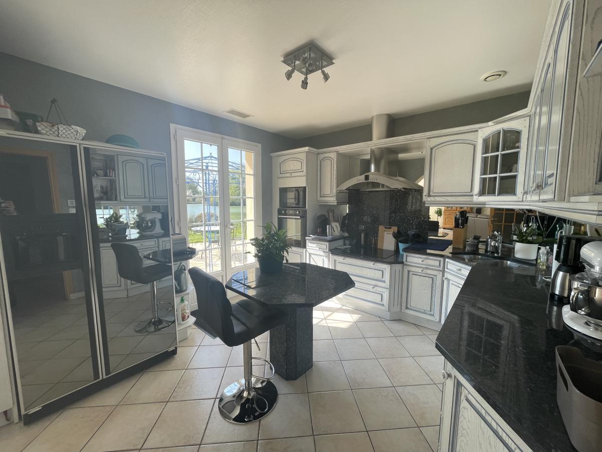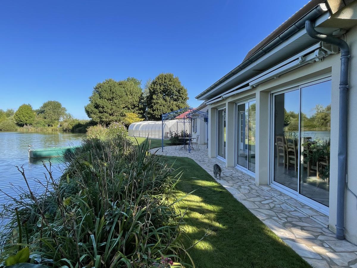 Maison d'architecte comprenant : hall d'entrée, séjour/salon de 50 m² donnant sur une grande terrasse avec vue sur l'étang, cuisine aménagée et équipée, 3 chambres dont une servant de bureau, salle d'eau avec douche à l''italienne et double vasque, WC, cuisine d'été pouvant être transformé en studio indépendant, puis cellier et cave à vin. Grenier au-dessus. Chauffage pompe à chaleur réversible. Aspiration centralisée.