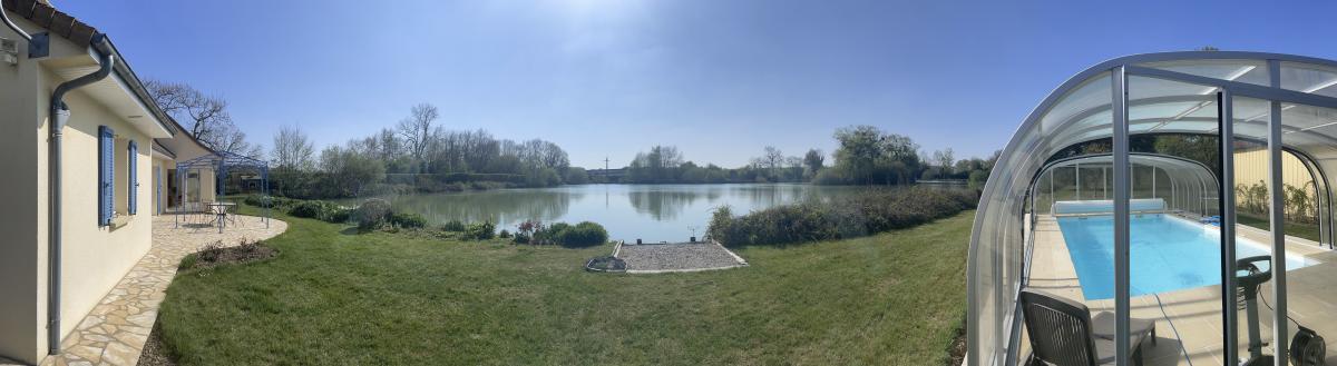 L'étang poissonneux possède une île en son centre et un cours d'eau qui longe la propriété lui permet d'être toujours oxygéné (propriété sans moustique!).