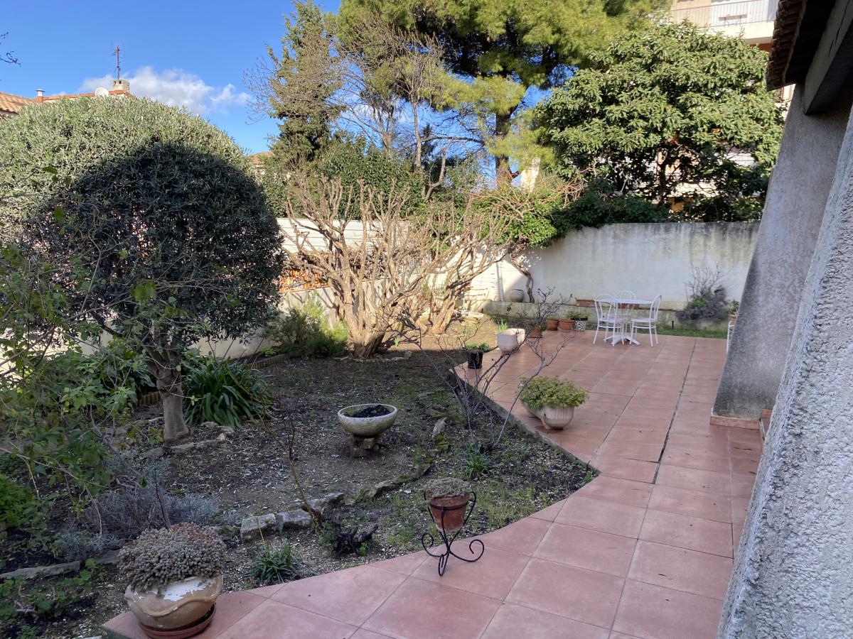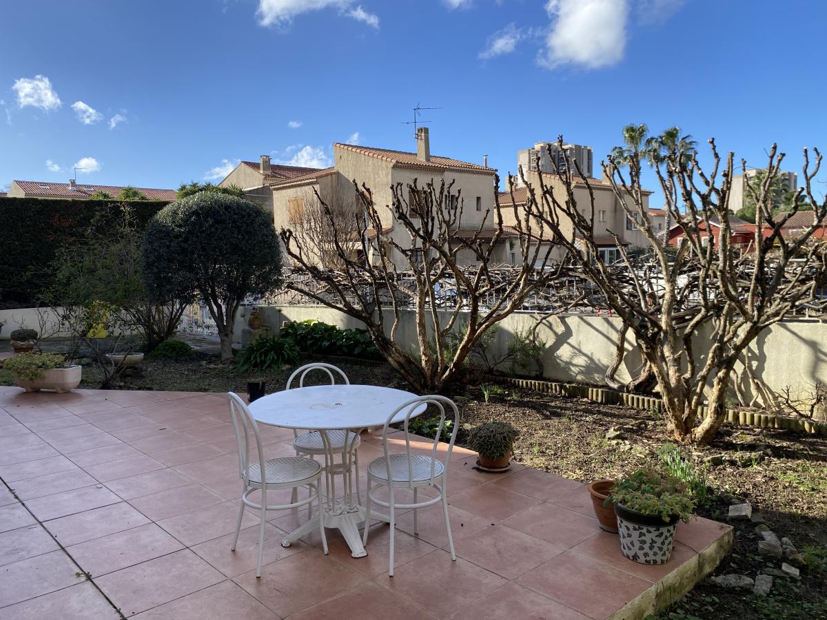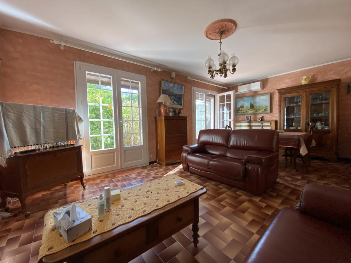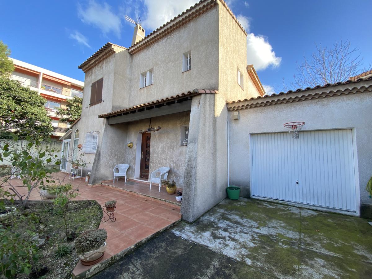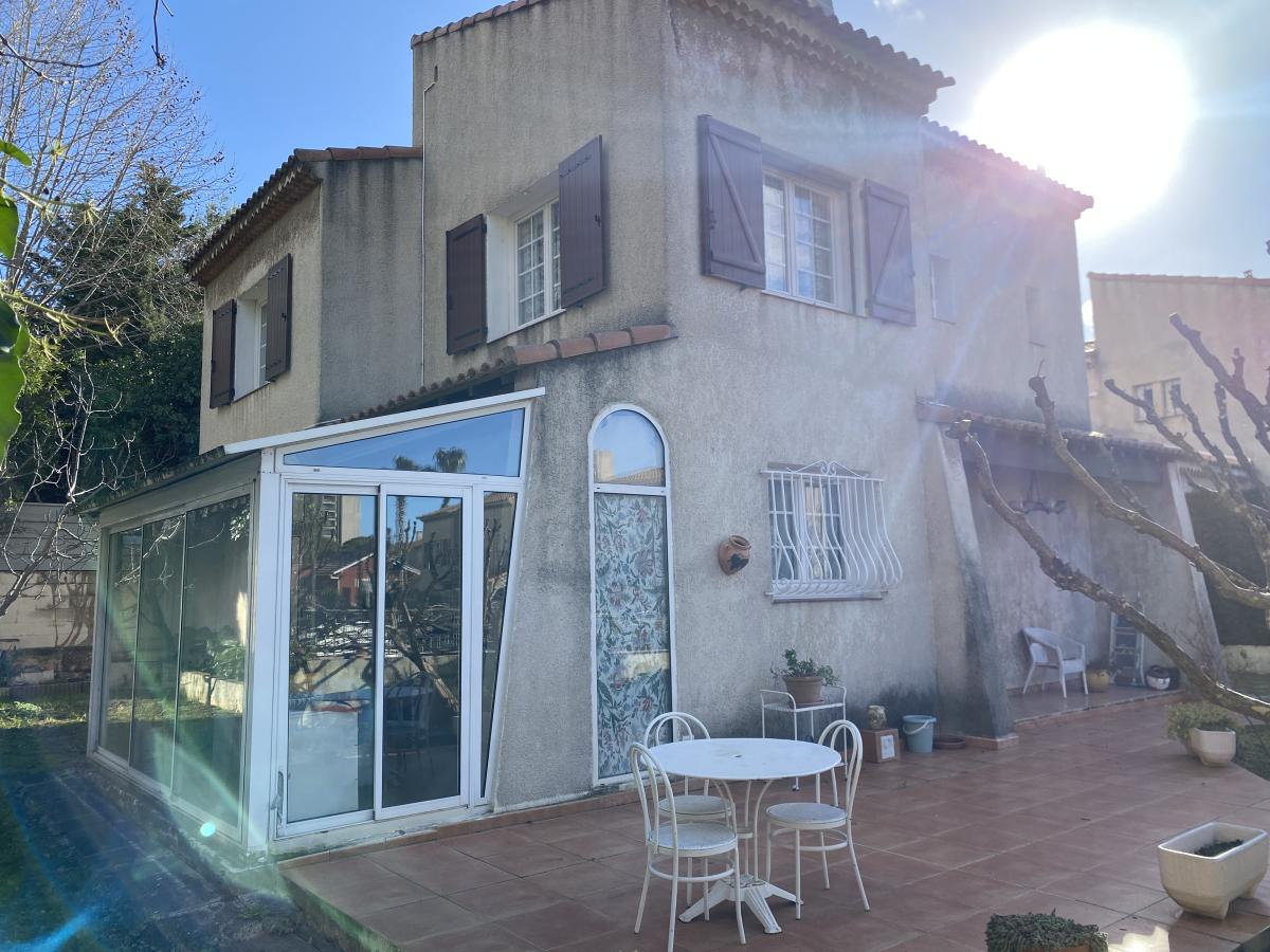 253, rue Pierre Doize 13010 Marseille - Villa T4, 120 m² environ, composé au rez-de-chaussée d'une entrée avec rangements, salon / salle à manger climatisés ouvrant sur jardin, cuisine séparée avec accès véranda, toilettes ; à l'étage, dégagement avec rangements, toilettes, salle de bains avec rangements, trois chambres dont une avec cabinet de toilettes. Au sein d'un petit lotissement clos, sur une parcelle de 397 m², avec garage, ce bien mérite une mise au gout du jour.