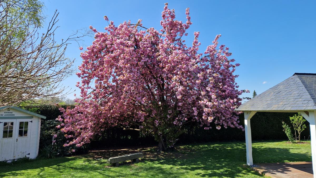 Le jardin est entièrement clos, présence d'un petit chalet pour les outil de jardin et d'une pergola