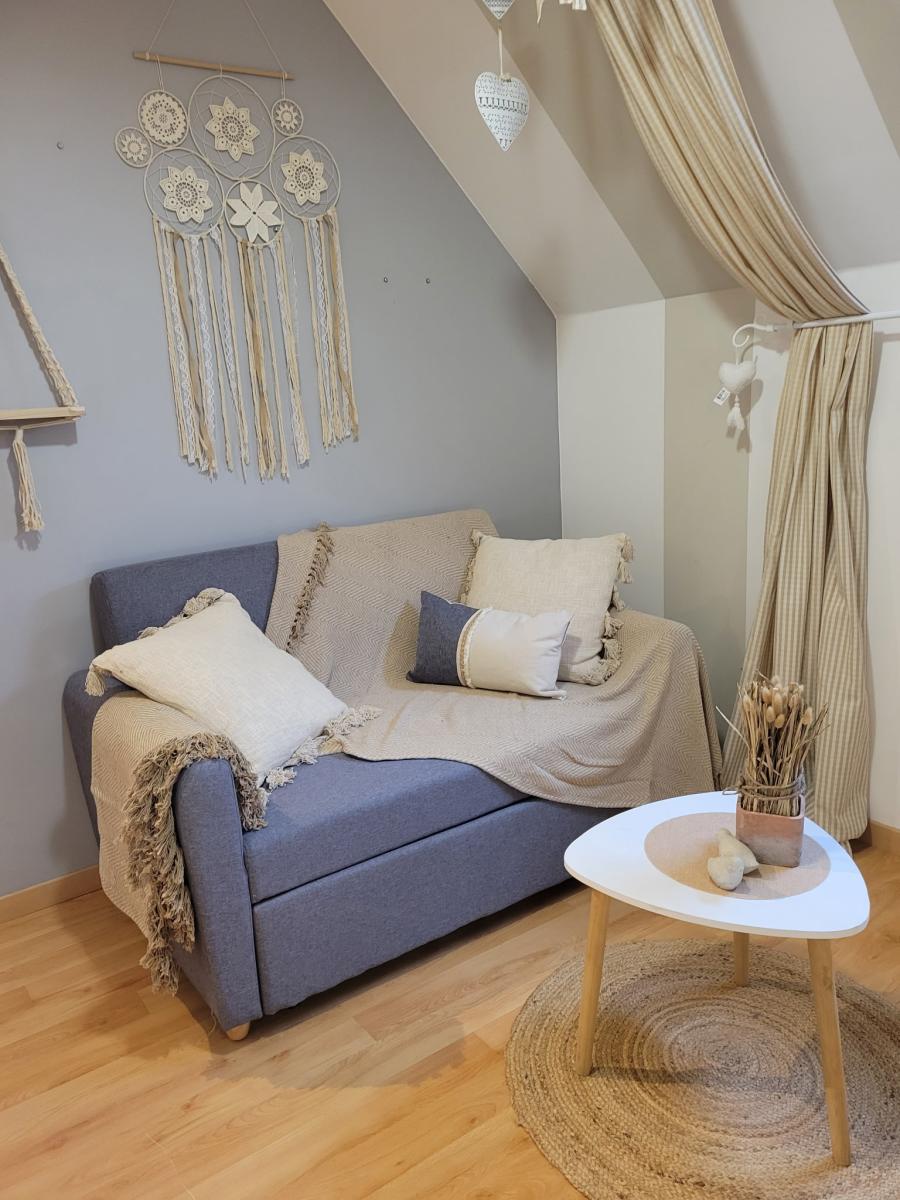 Une cuisine aménagée et équipée, une salle de bains, un wc, une chambre ( bureau)