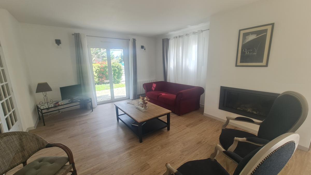 Au rez-de-chaussée : une entrée, une belle pièce de vie lumineuse avec cheminée ouvrant sur une terrasse exposée sud/ouest, une cuisine indépendante aménagée, une chambre, une salle d’eau, WC, ainsi qu’une arrière-cuisine/buanderie.