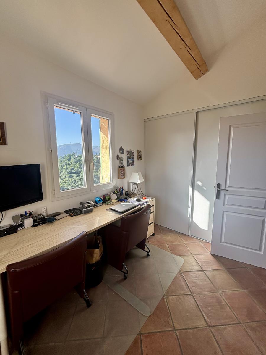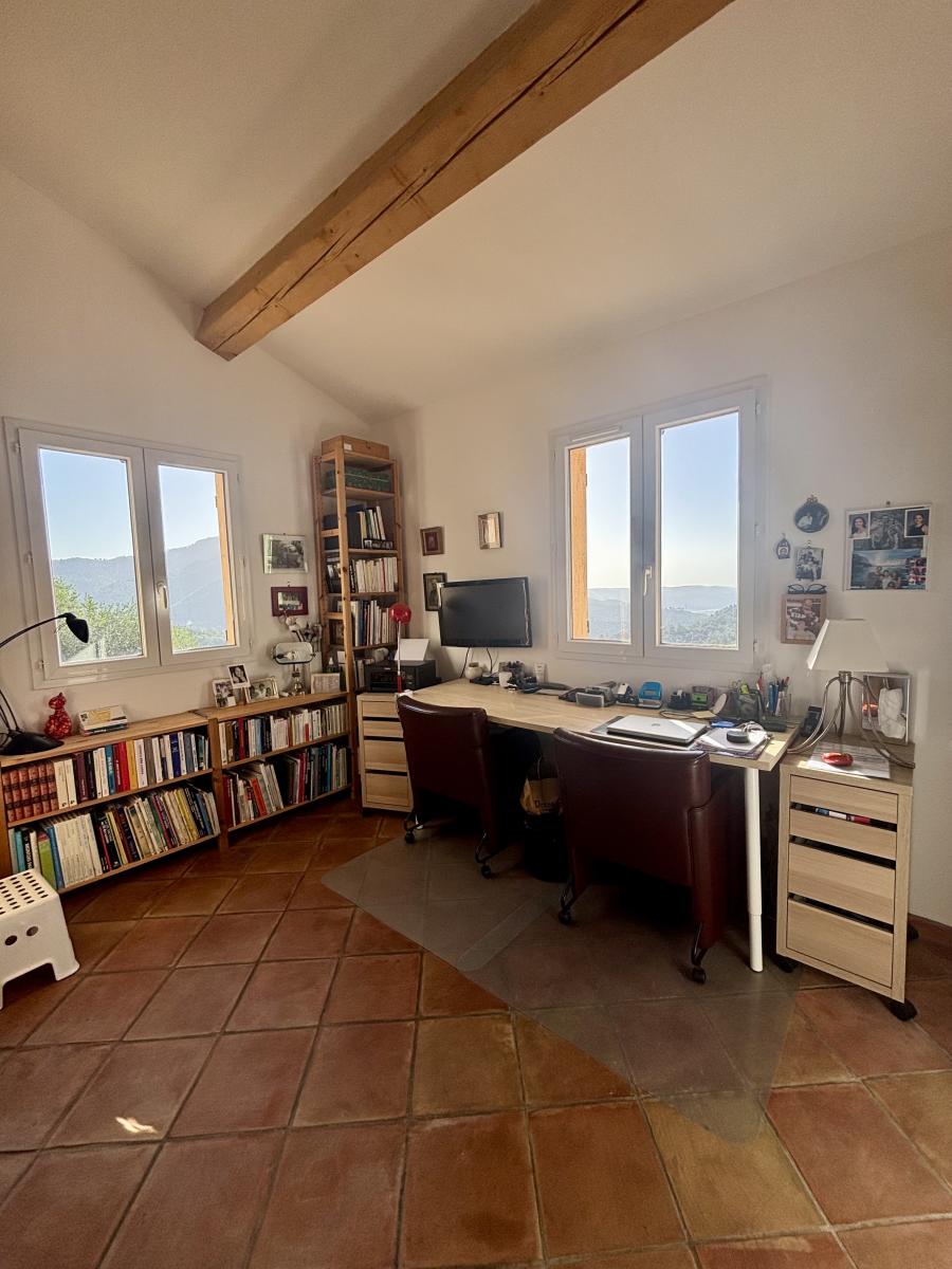 Le premier étage se compose d’un palier desservant un WC indépendant, une salle de bain, et deux chambres, dont l’une aménagée en bureau et l’autre équipée d’un dressing et d’une terrasse offrant une vue époustouflante.