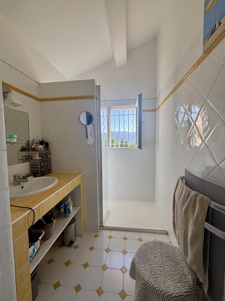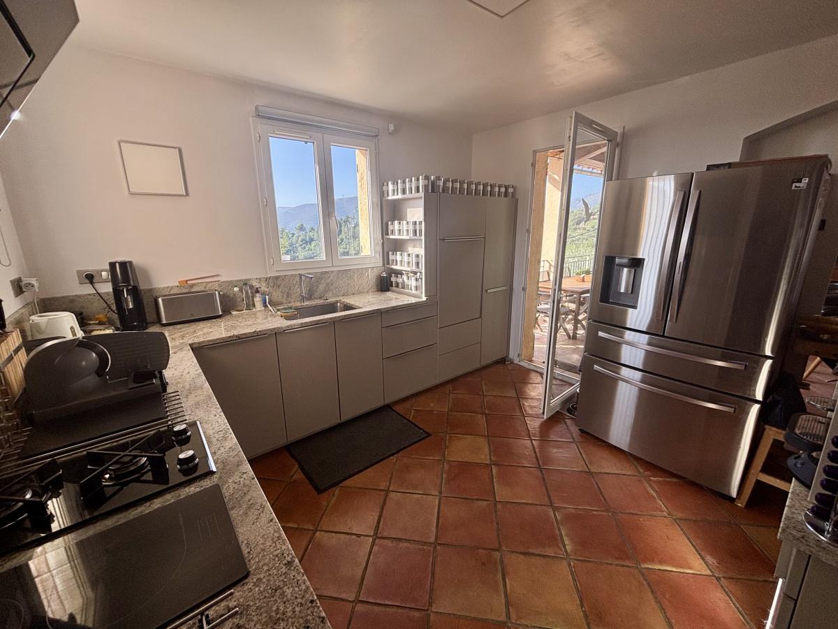 Découvrez cette charmante maison individuelle d'environ 137 m², répartie sur trois niveaux, et située dans un quartier résidentiel paisible, sans vis-à-vis, offrant une vue imprenable sur les collines et la mer. Érigée sur un terrain de 1737 m², elle bénéficie d'une luminosité exceptionnelle grâce à son exposition et ses nombreuses ouvertures.