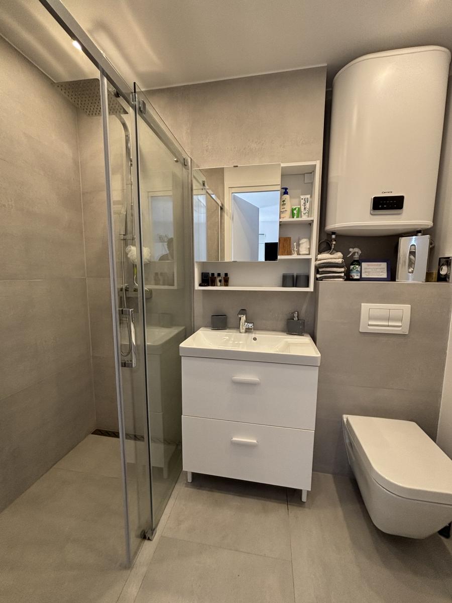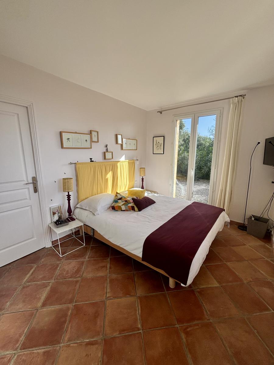 Un couloir mène également à un WC indépendant et une chambre avec salle d'eau, et un coin buanderie. Cette chambre dispose également d’un accès direct au jardin.