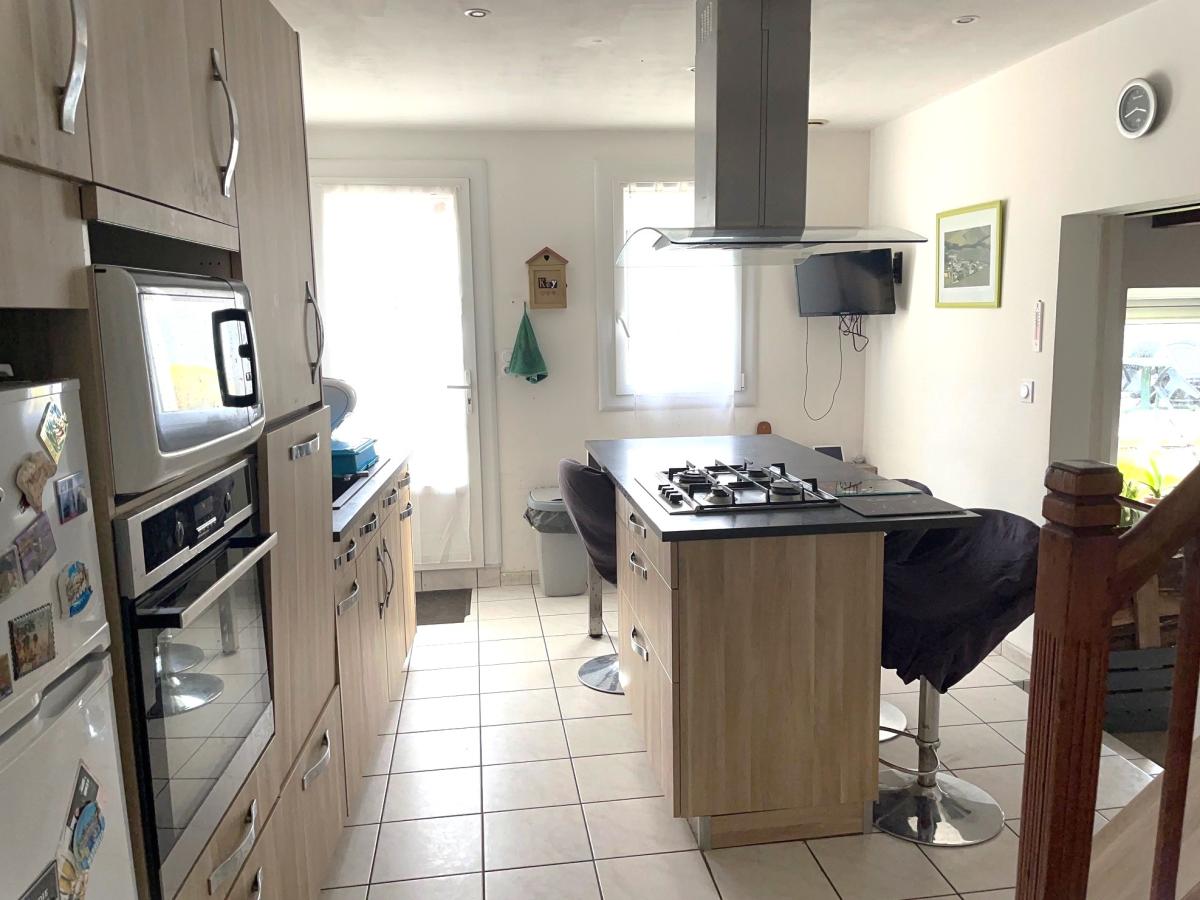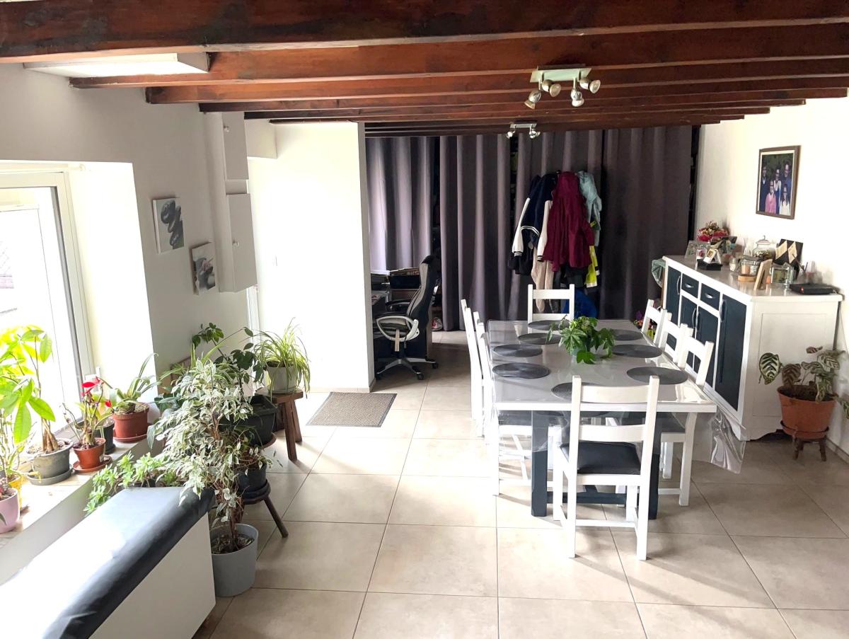 Située dans un environnement calme, maison familiale comprenant : séjour de 35 M²avec poêle à bois, salon, cuisine équipée et aménagée de 13 m², débarras, une chambre de 13 m², wc.