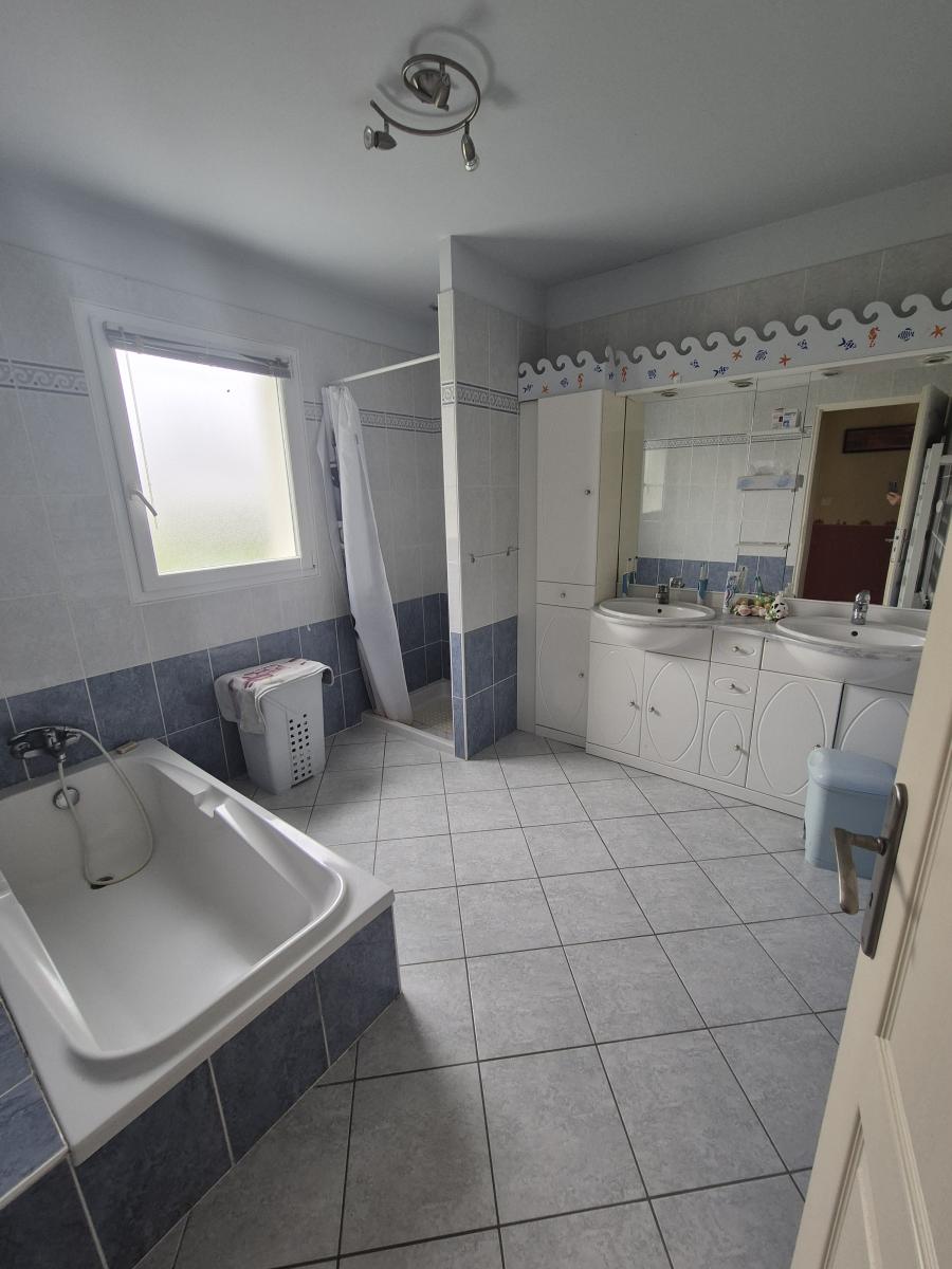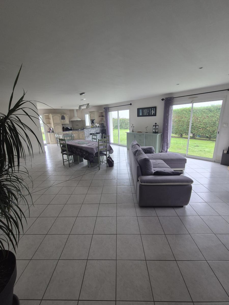 La maison comprend : vaste pièce de vie, cuisine A/E, salle de bains, wc, 3 chambres, chaufferie/débarras (avec un second wc) et un garage avec son grenier.