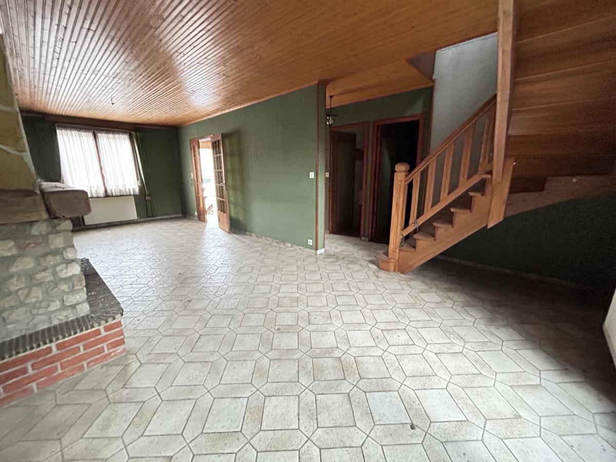 L'Office Notarial vous propose à la vente sur la commune de Bray sur Somme une maison mitoyenne en briques couverte d'ardoises d'une surface d'environ 135 m² à proximité de tout commerces comprenant :