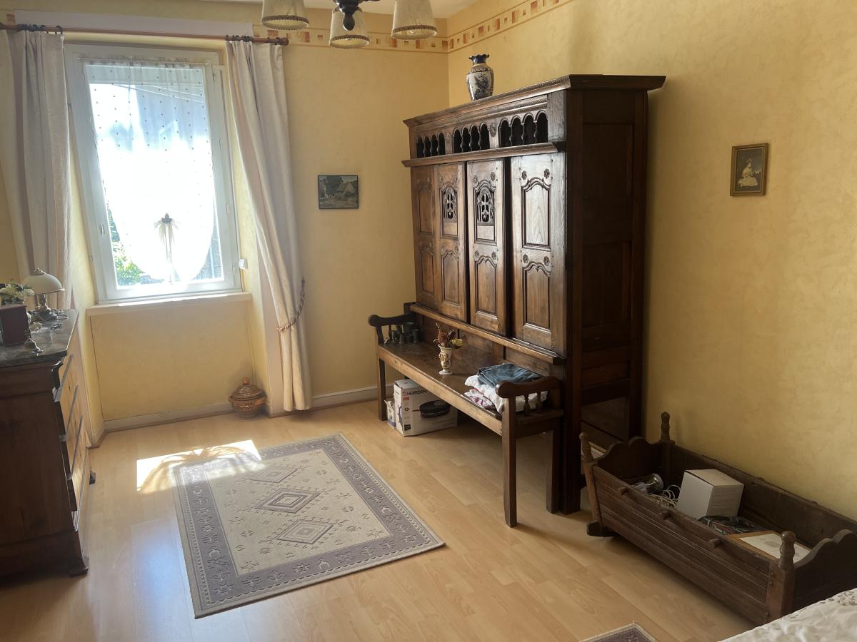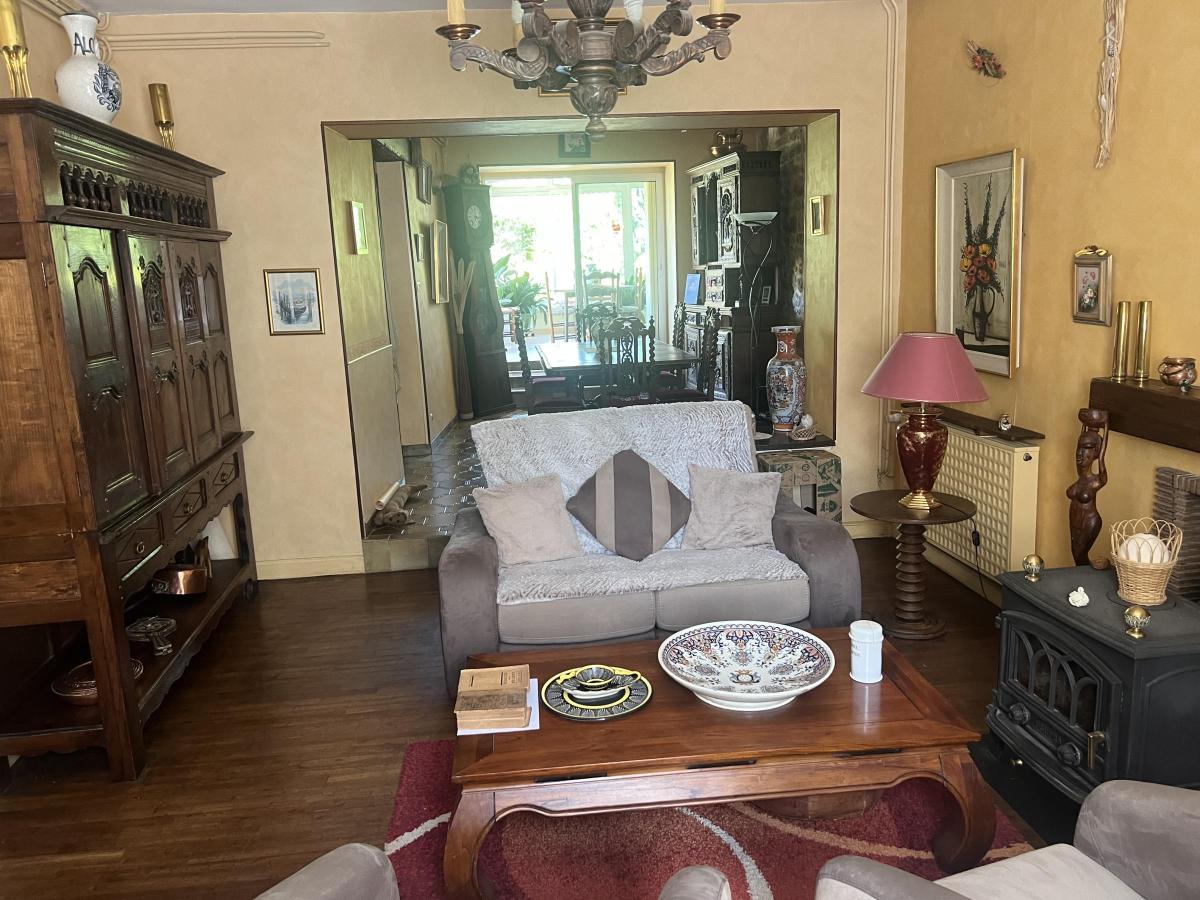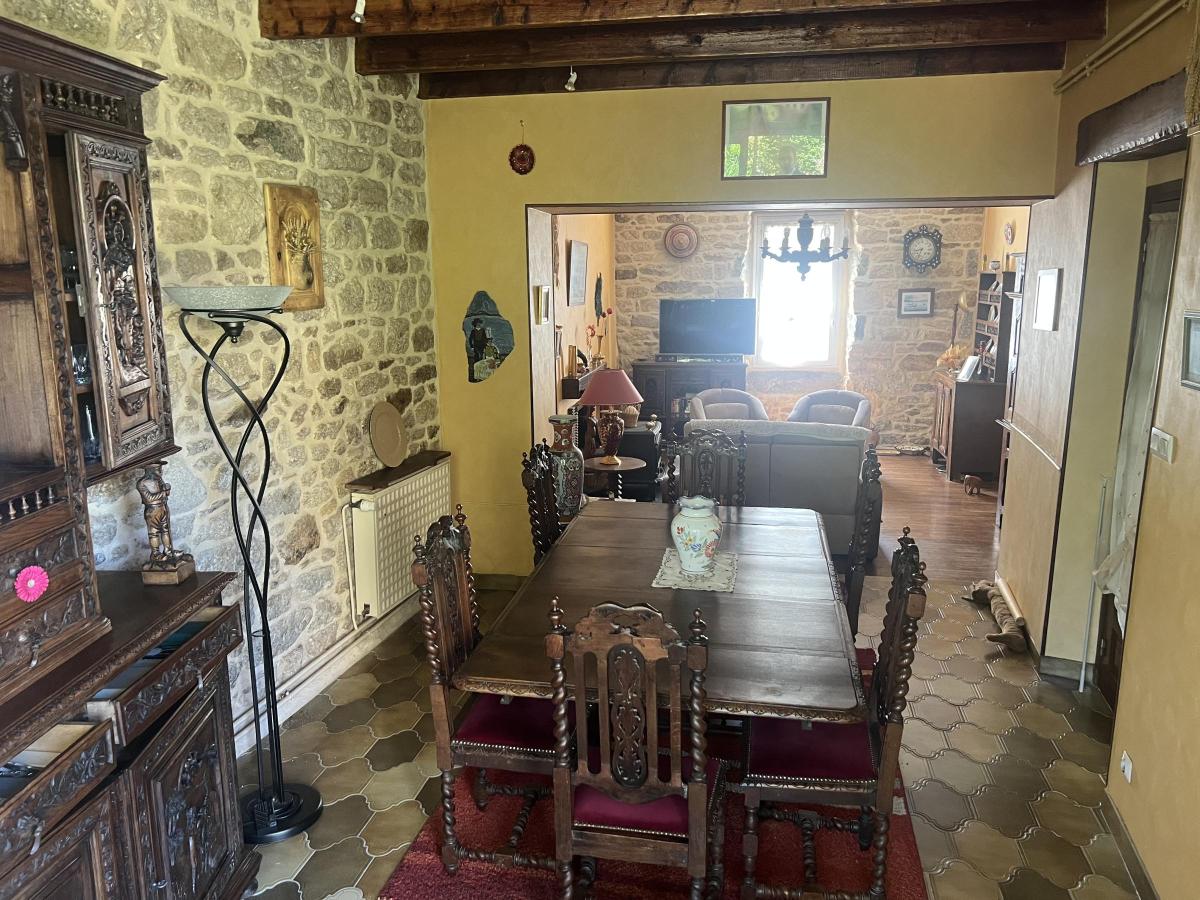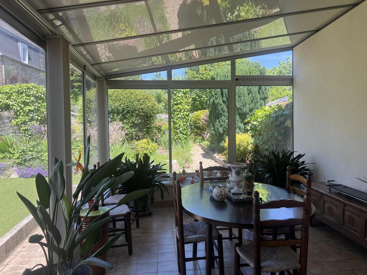 - Au rez-de-chaussée : entrée, cuisine, salon/séjour avec poêle, véranda