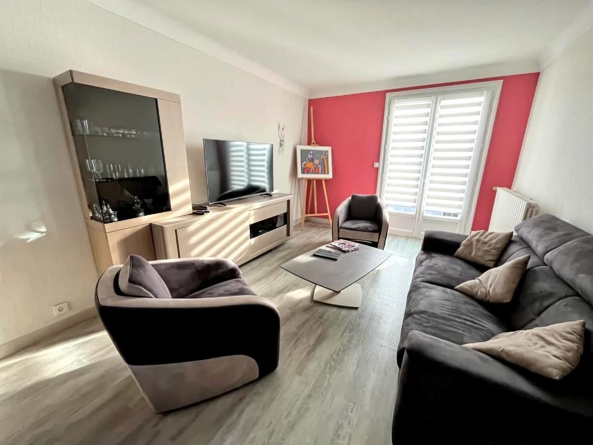 - A l'étage, un dégagement, un salon/séjour traversant, une cuisine séparée, deux chambres avec placards et une salle de bains et un wc séparé.