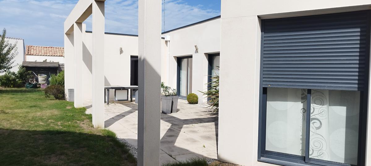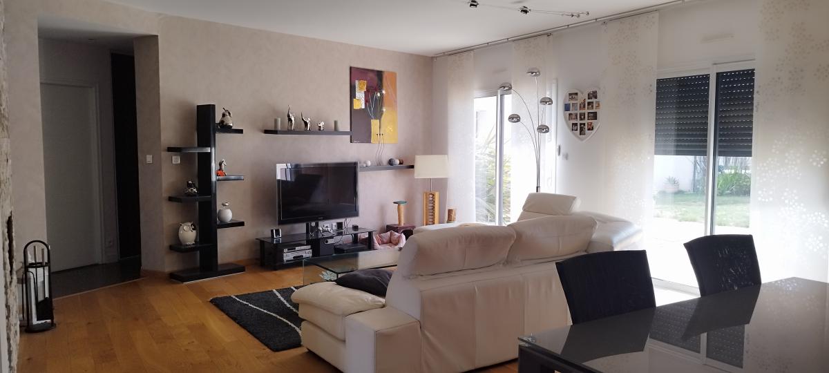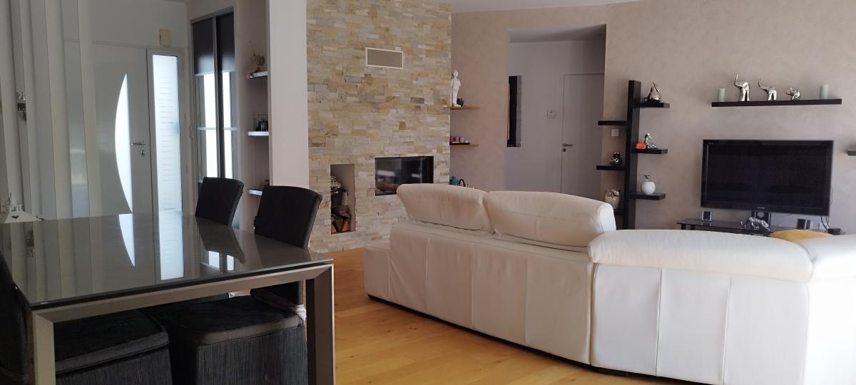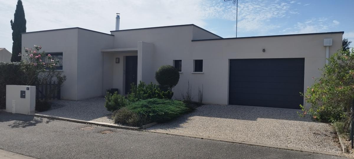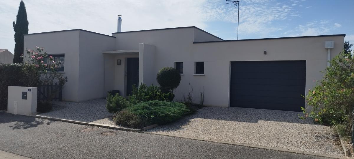 A 20 minutes de LA ROCHE SUR YON et des plages, Maison contemporaine en lotissement, dans un quartier calme comprenant : Entrée, séjour/salon avec cheminée insert, cuisine aménagée, buanderie, une suite parentale avec dressing, salle de bains avec douche et WC, deux chambres. Garage.