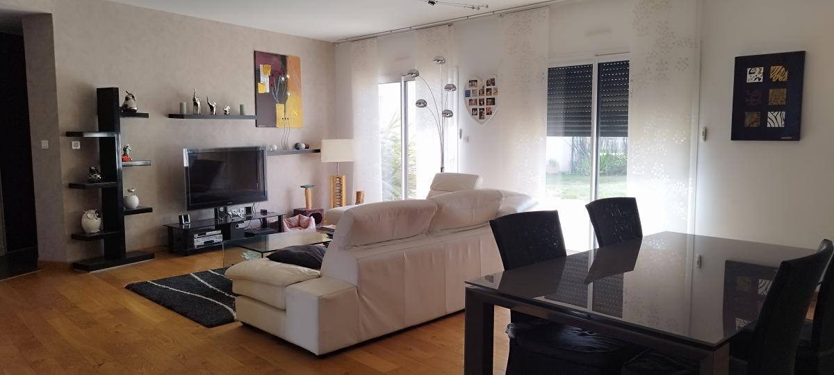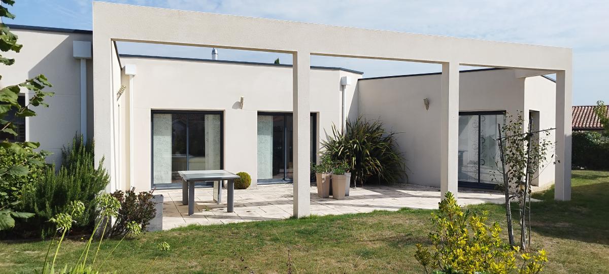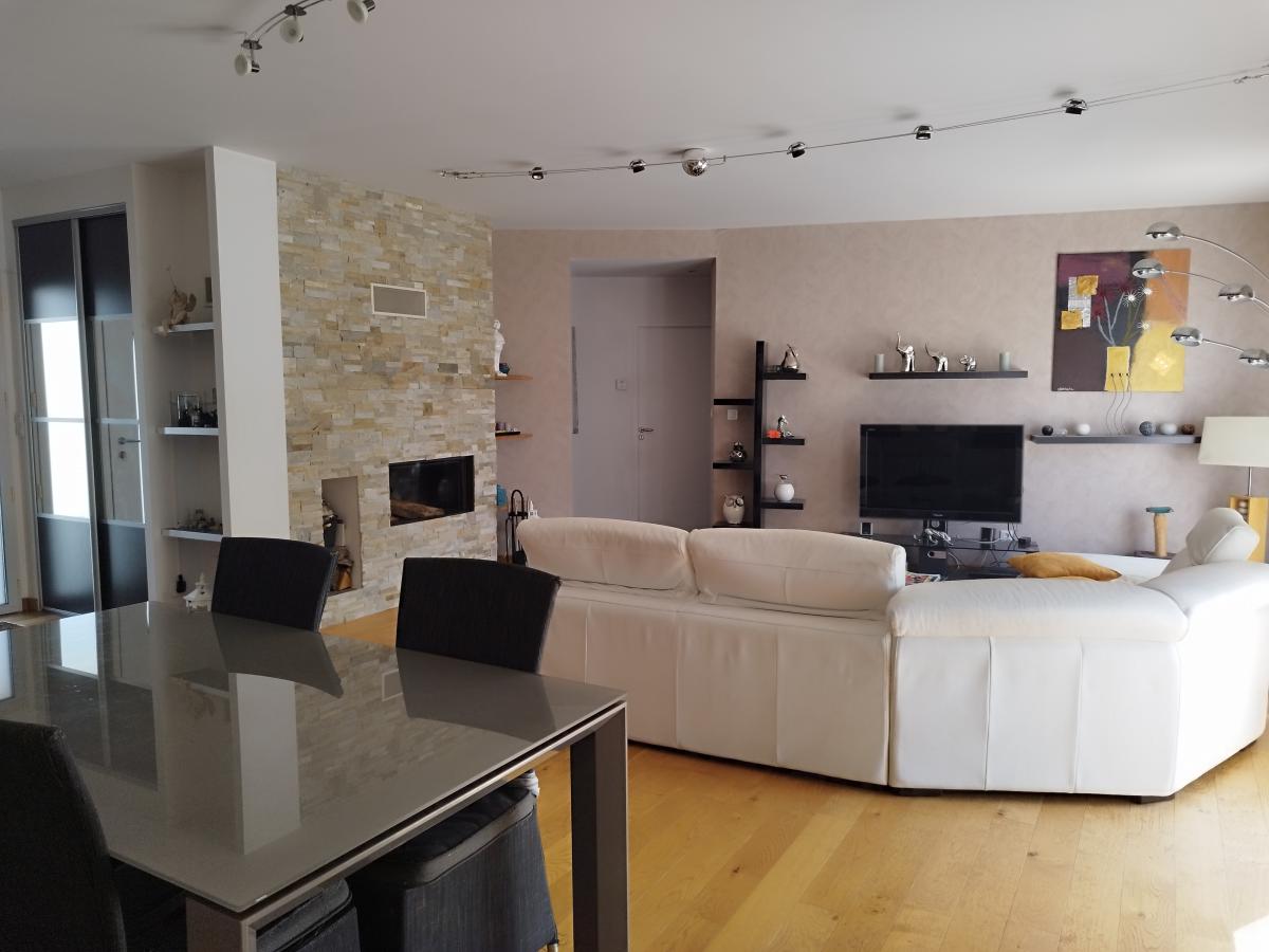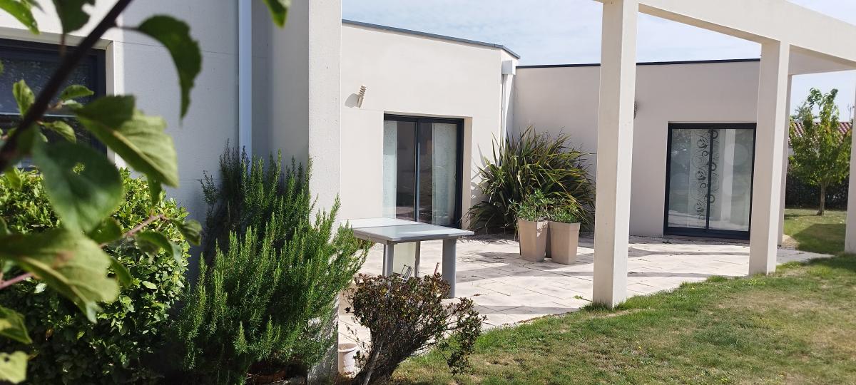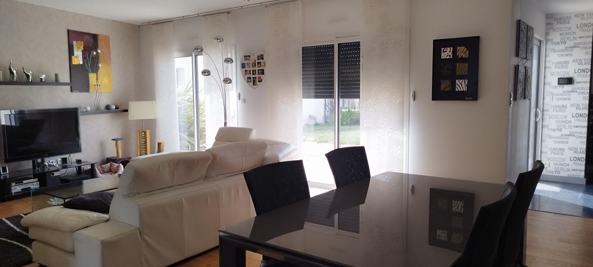 A 20 minutes de LA ROCHE SUR YON et des plages, Maison contemporaine en lotissement, dans un quartier calme comprenant : Entrée, séjour/salon avec cheminée insert, cuisine aménagée, buanderie, une suite parentale avec dressing, salle de bains avec douche et WC, deux chambres. Garage.