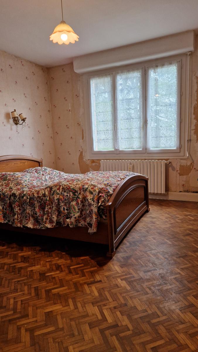 A proximité des commerces, jolie maison de 140 m² habitables, sur un terrain clos de 575 m². Au rez-de-chaussée : entrée, salon/séjour avec cheminée insert, cuisine aménagée et équipée, chambre, salle de bains et wc. A l'étage : palier desservant trois chambres avec rangements. Sous-sol avec garage. Travaux à prévoir. Du charme.