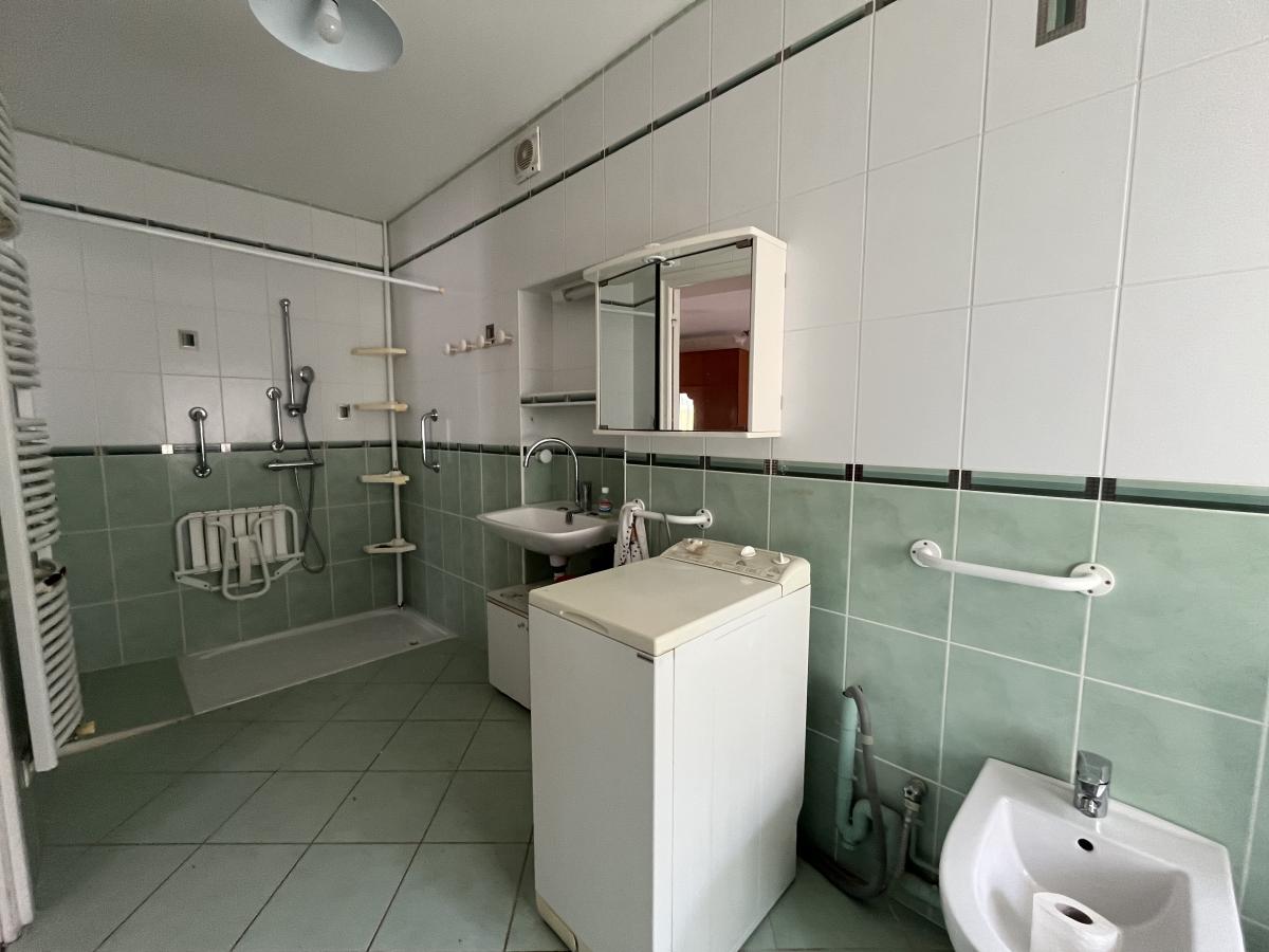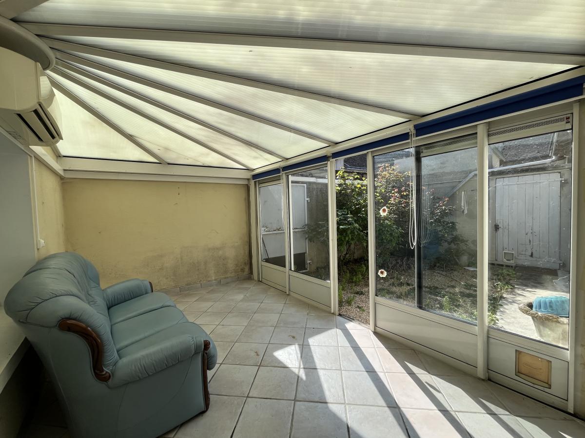 Entrée, séjour, salle d’eau, wc, cuisine aménagée et équipée, deux chambres, dégagement, salle de bains. Arrière-cuisine et véranda.