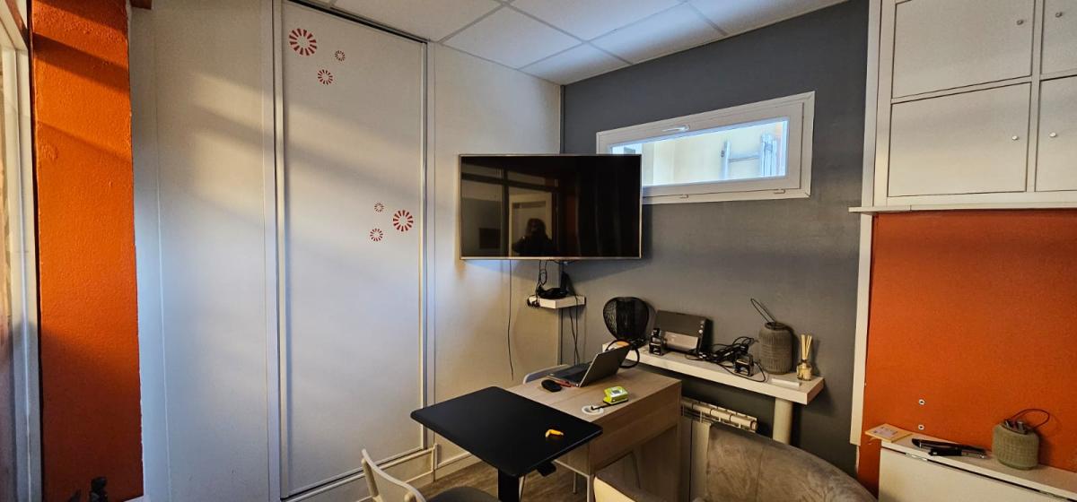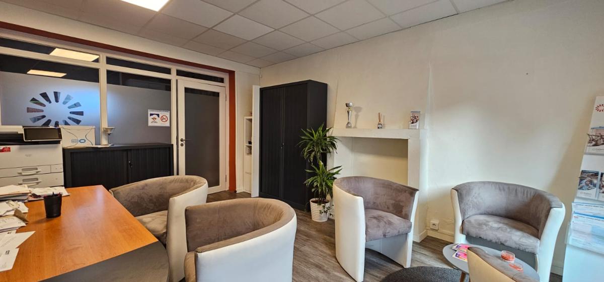 Un local professionnel : comprenant une salle d'attente accueillante et un bureau fonctionnel avec vasque avec accès terrasse.