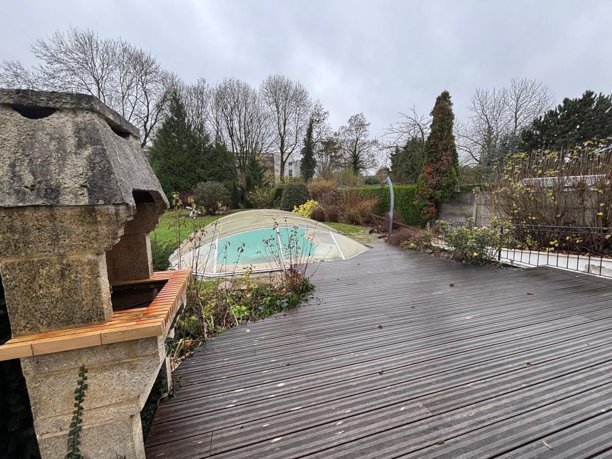 Proche de toutes commodités, maison d'une surface d'environ 145 m², comprenant : Au rez-de-chaussée : grand salon séjour, avec cheminée feu de bois, cuisine, une chambre avec douche. WC. A l'étage : trois chambres spacieuses, une salle de bains. Sous-sol complet avec garage. Jardin clos et arboré avec piscine à rénover. Le tout bâti sur un terrain de 1.019 m².
