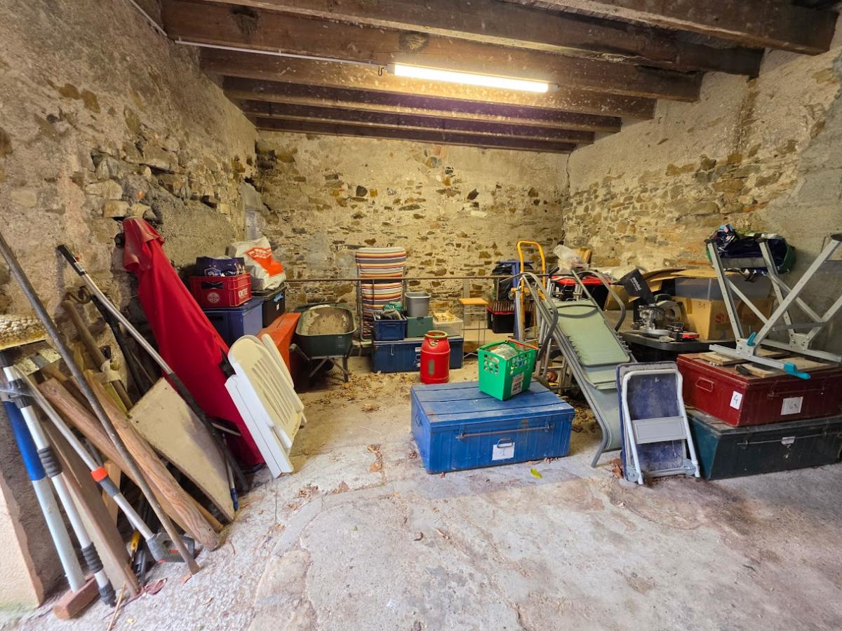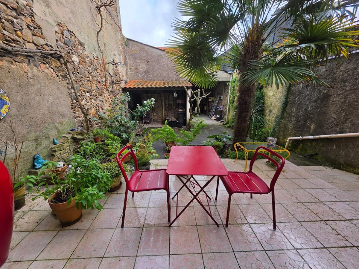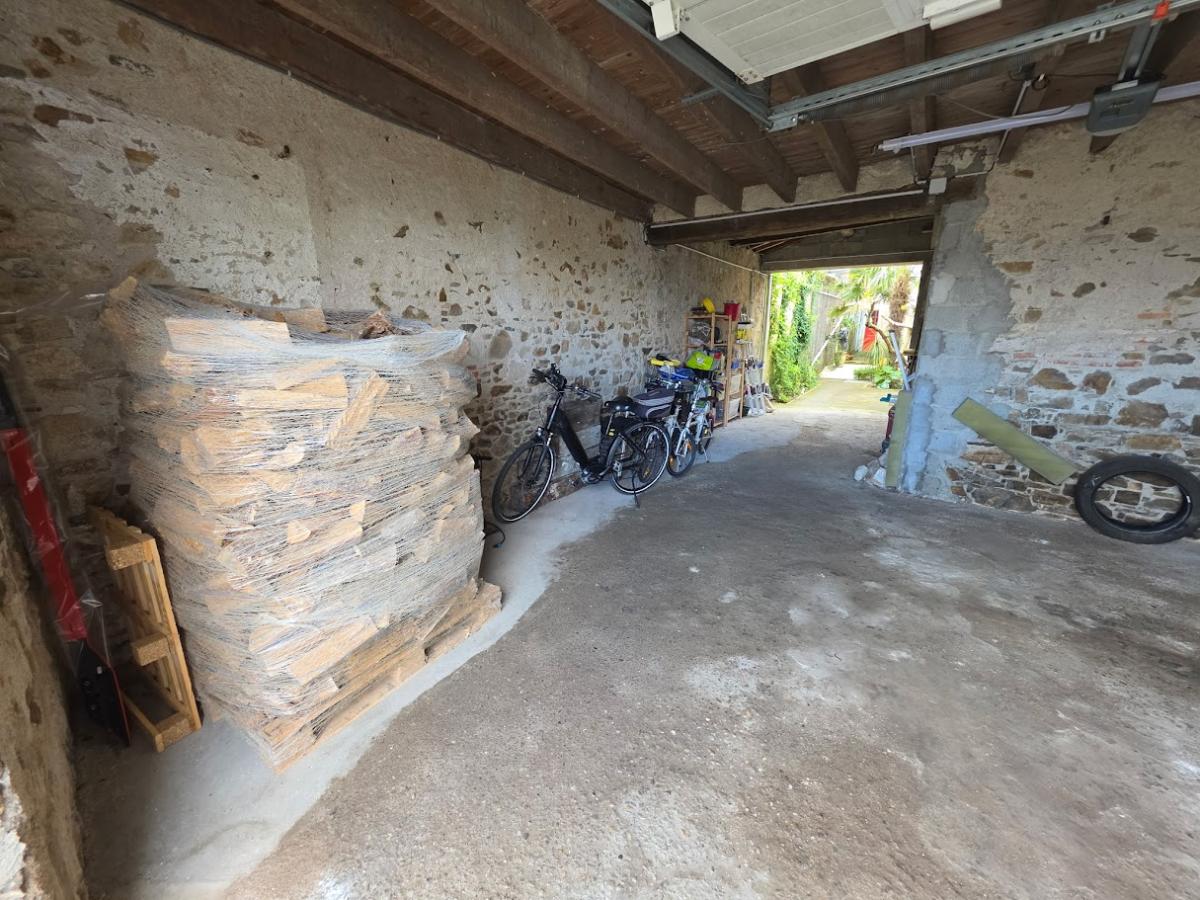 Entièrement close de murs en pierre et sans vis-à-vis, la parcelle dispose d’un puits, d’une terrasse carrelée ainsi que d’un grand garage, d'un atelier et d'une pièce en mezzanine avec vue sur la Loire.