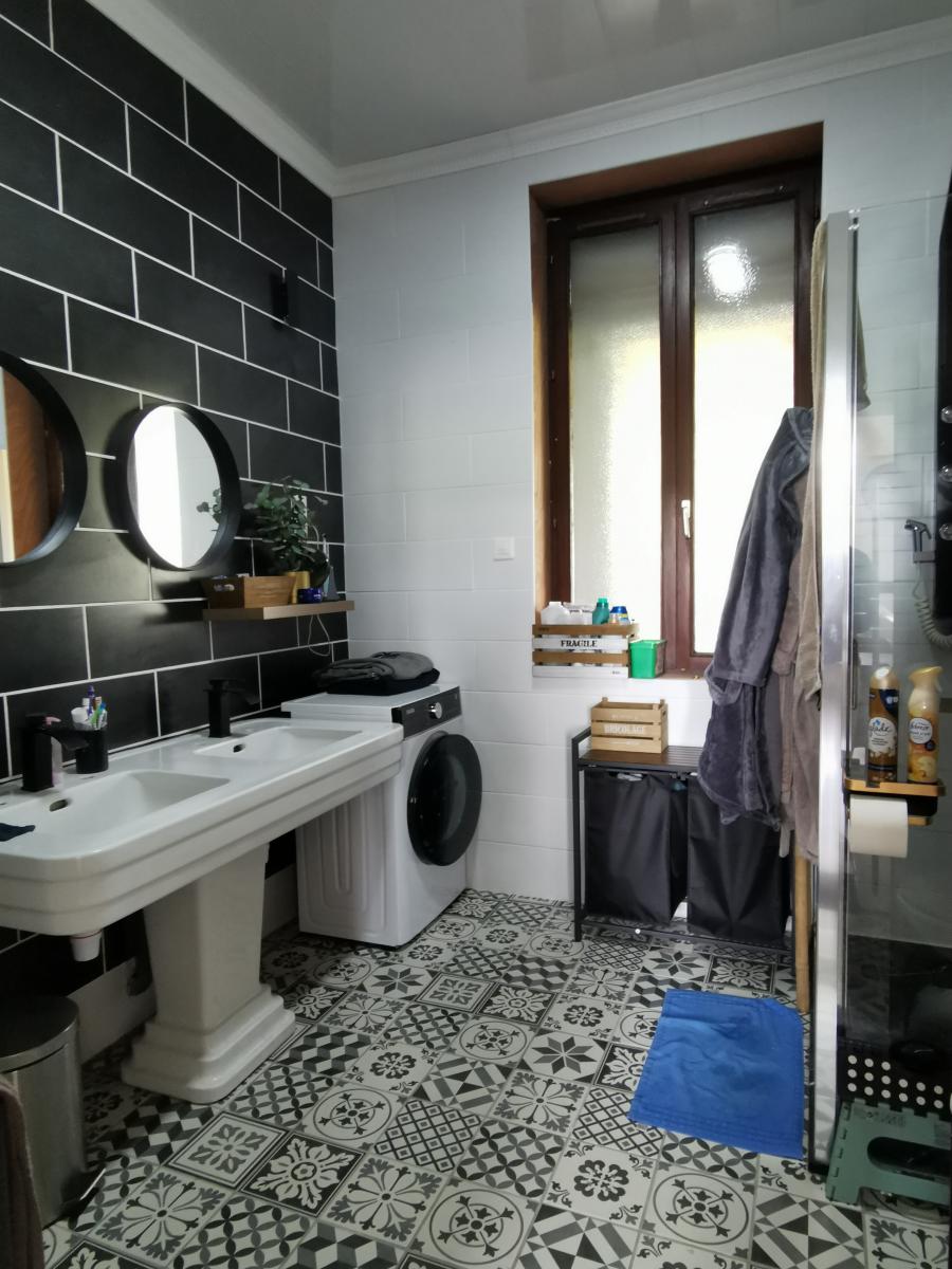 - étage (mansardé, surfaces loi Carrez) : palier (11,5 m²) desservant deux grandes chambres indépendantes (20 m² et 22,5 m²) et une salle d'eau avec WC (7 m²) ;