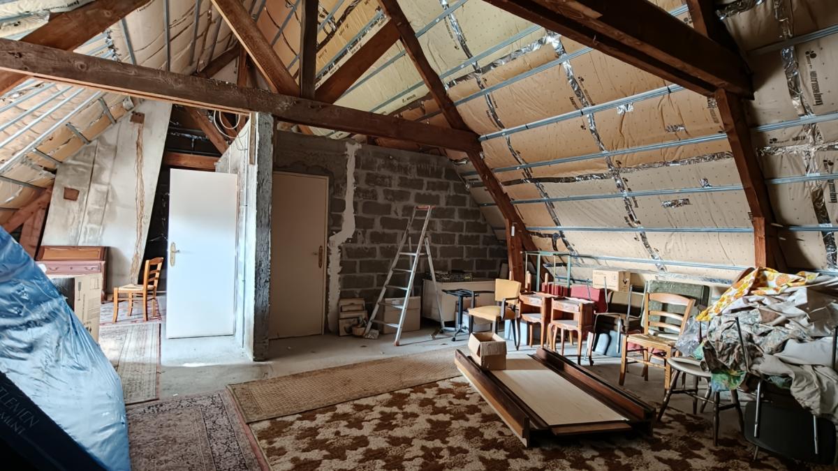 Combles isolés et aménageables d’environ 95 m², permettant la création de chambres supplémentaires, d’un espace loisirs ou d’une suite.