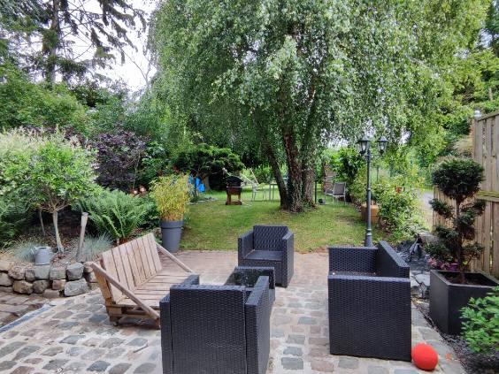 Salon sur jardin de 37m2, vaste salle à manger/cuisine équipée de 19m2 - garage avec espace buanderie.