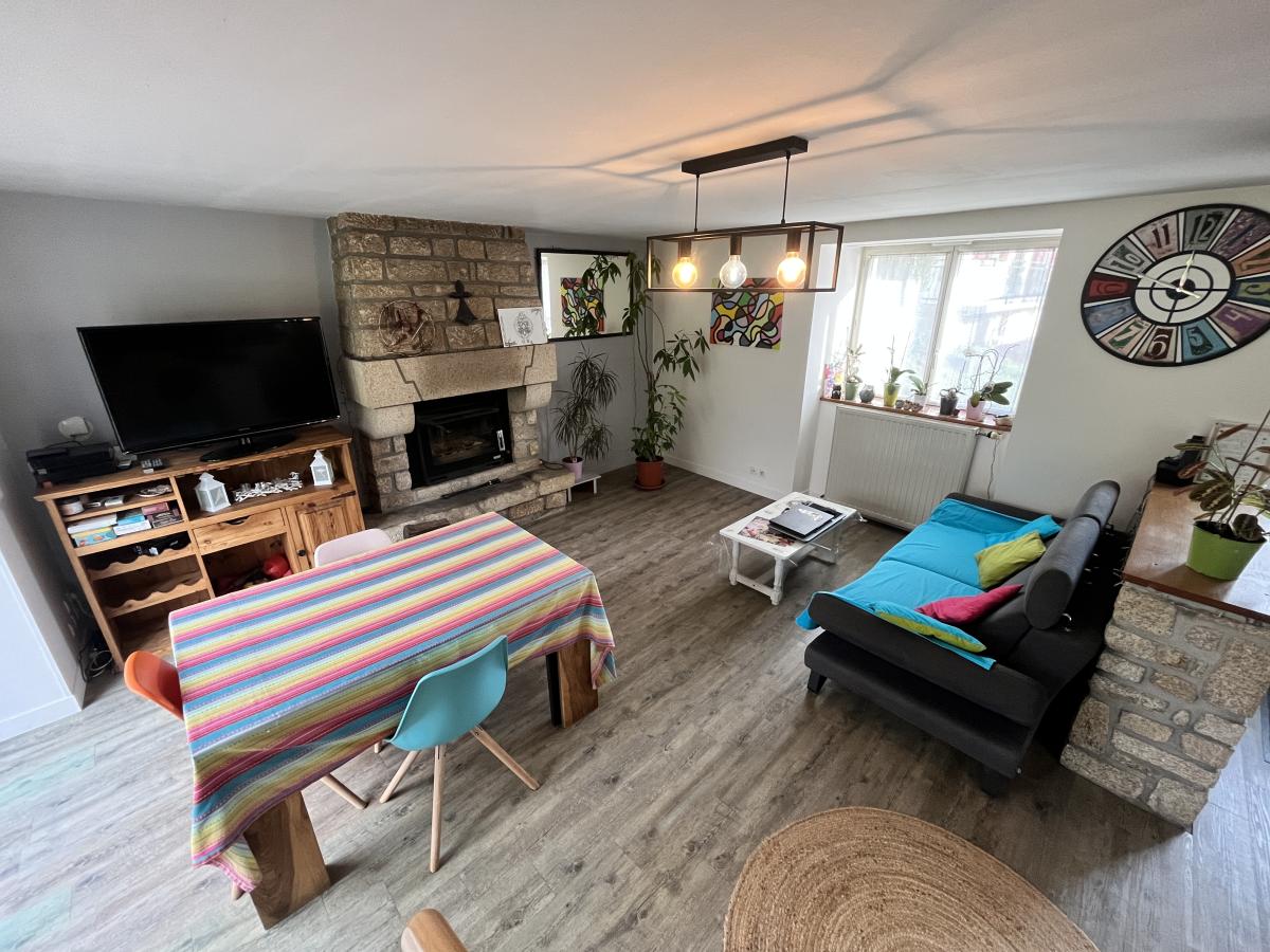 Elle se compose, au rez-de-chaussée, d’un séjour avec cheminée, d’une cuisine ouverte, de deux chambres, d’une salle de bains et d’un WC.