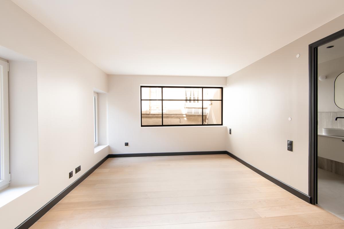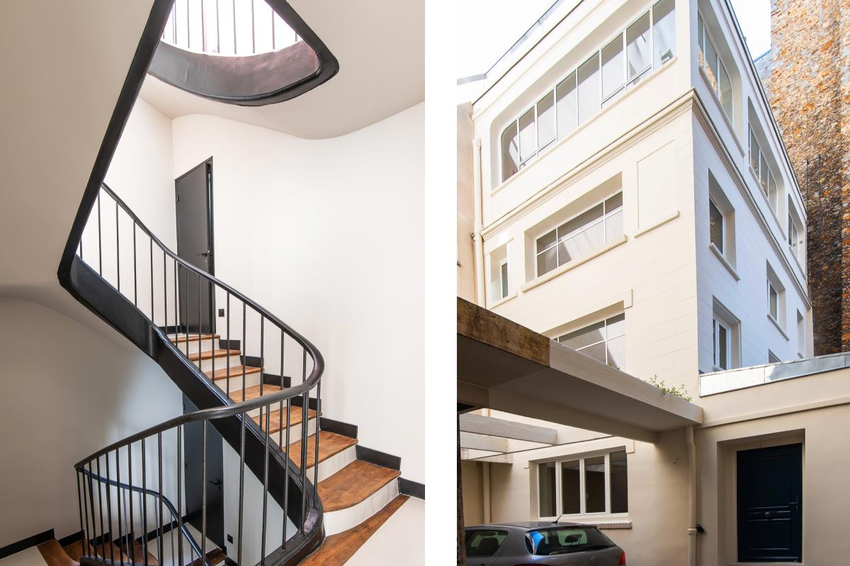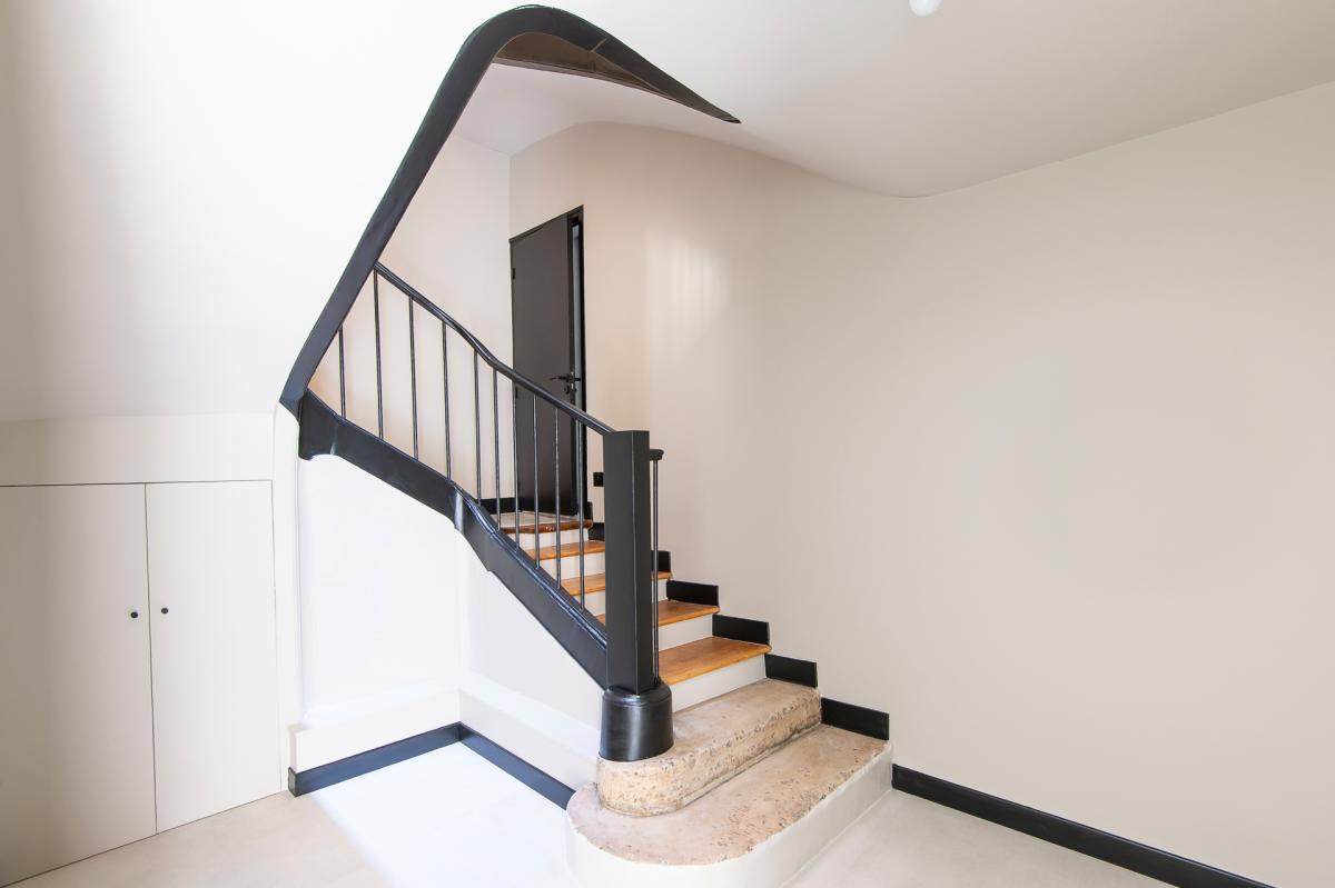 Triplex rénové avec des matériaux de qualité et élégance, situé en fond de cour avec accès indépendant, calme absolu. Exposition sud avec vue dégagée.