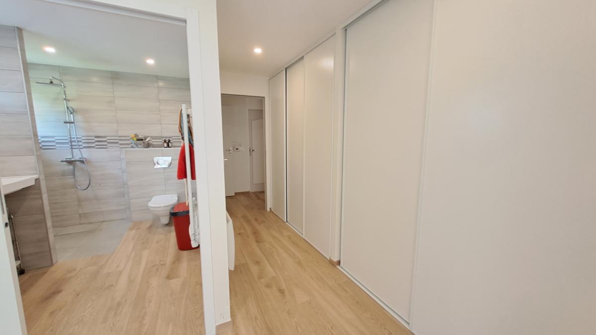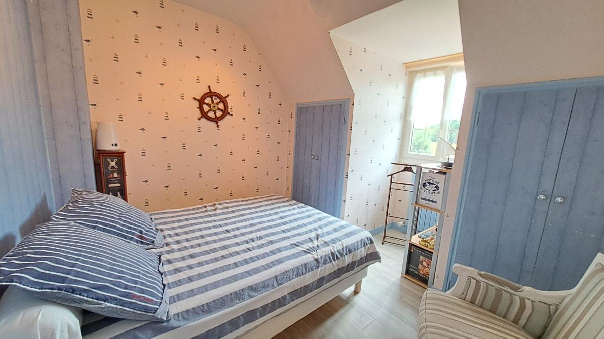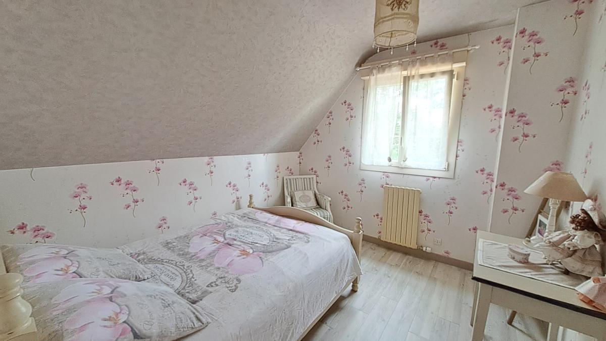 - À l’étage : Un palier dessert deux chambres dont une avec placards, un bureau, un WC, une salle d’eau et un grenier aménageable.