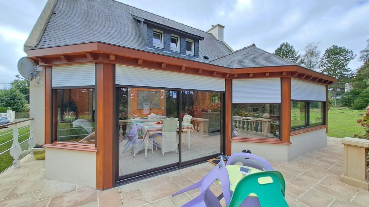 - Au rez-de-chaussée : Ce niveau vivable de plain pied offre une entrée ouvrant sur une vaste pièce de vie d'environ 67 m² comprenant une véranda lumineuse, un double salon avec poêle à bois, une cuisine ouverte aménagée et équipée, un W.C., ainsi qu'une suite parentale avec dressing et salle d’eau avec W.C. (aux normes P.M.R.). Deux terrasses accessibles depuis les pièces de vie complètent ce niveau.