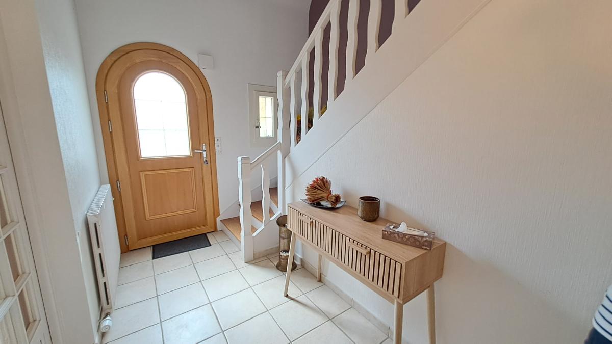 Située dans un environnement calme et verdoyant à environ 1 km du centre, cette maison offre de beaux volumes et un agencement fonctionnel sur trois niveaux :