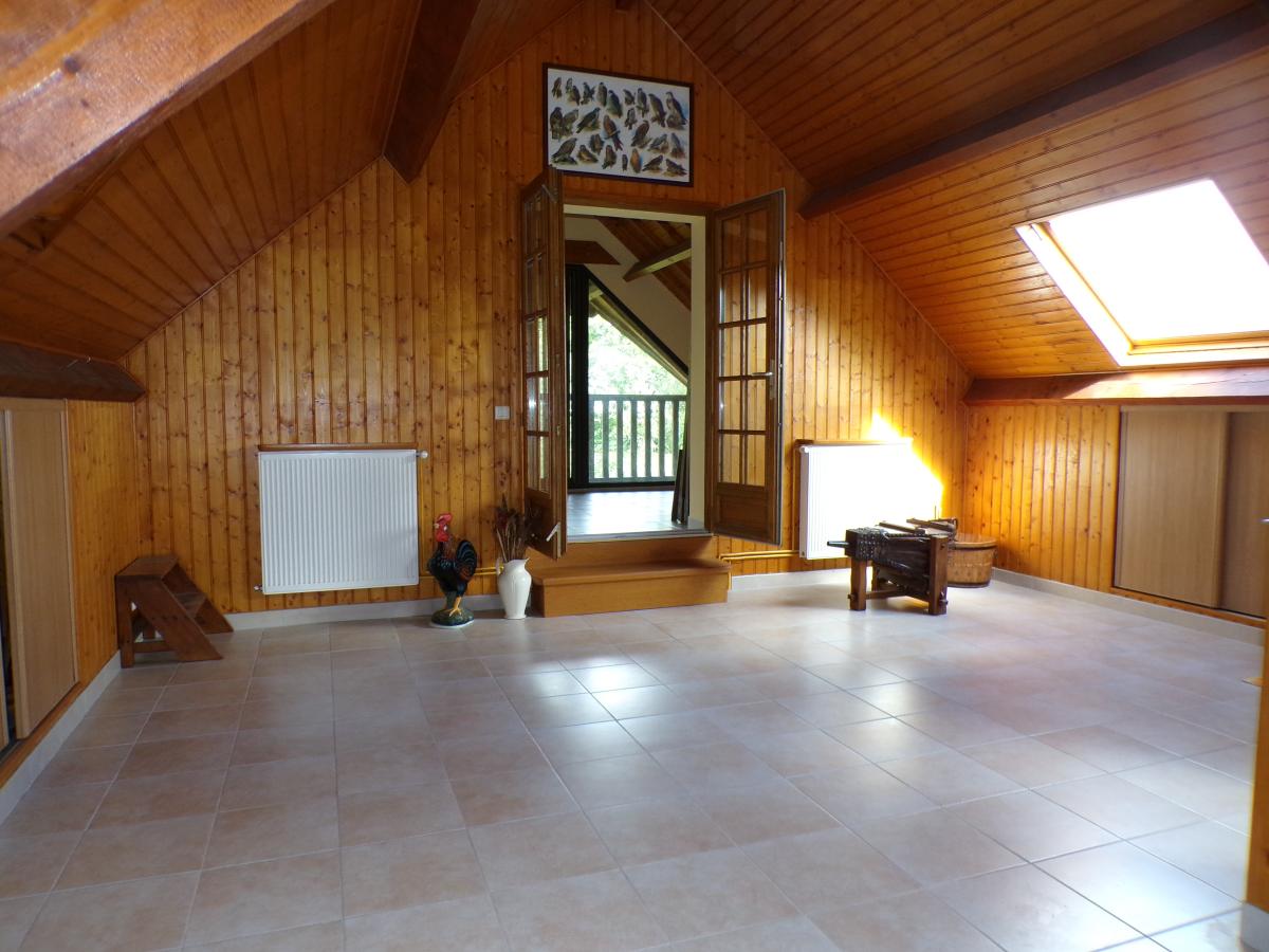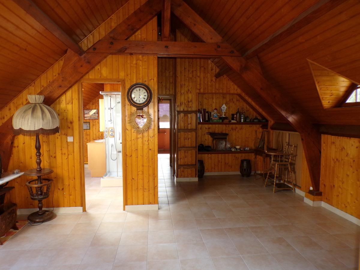 Au rez-de-chaussée : entrée/couloir desservant séjour/salon avec cheminée feu de bois insert, véranda, cuisine aménagée et équipée, une chambre, un bureau ou deuxième chambre, salle de bains, wc ;