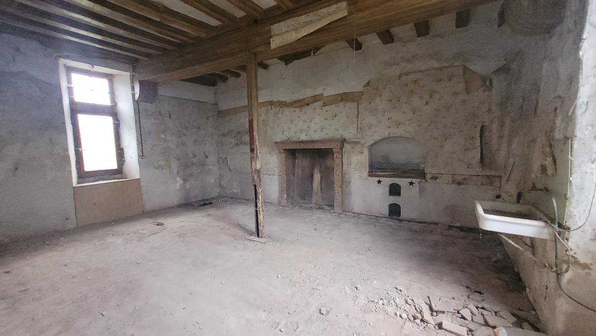 Au rez-de-chaussée : deux grandes pièces avec cheminée. Grenier au-dessus