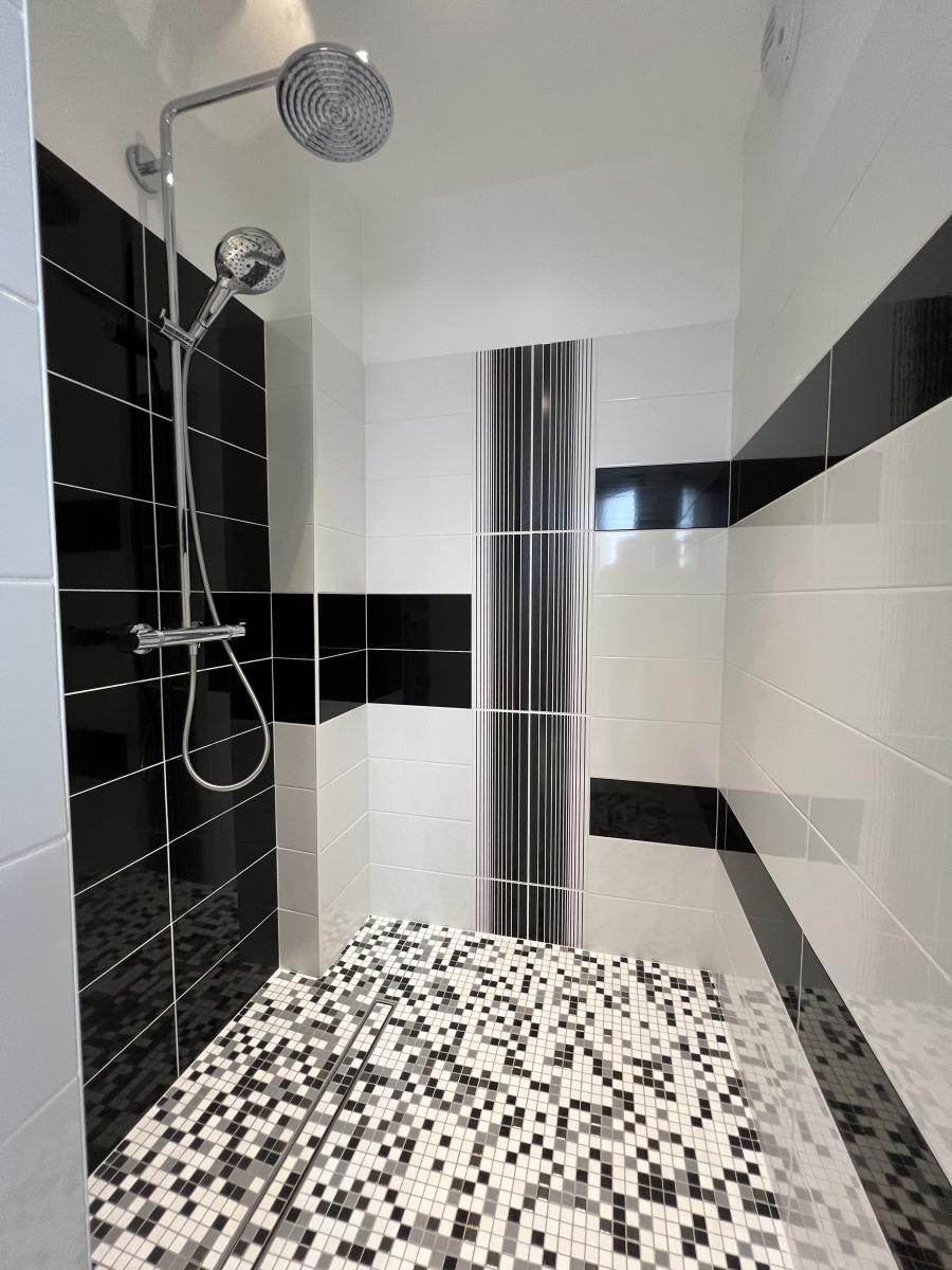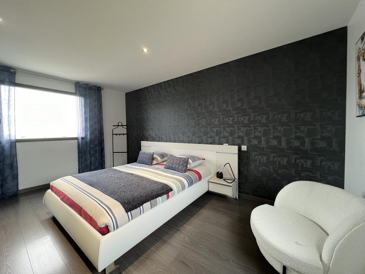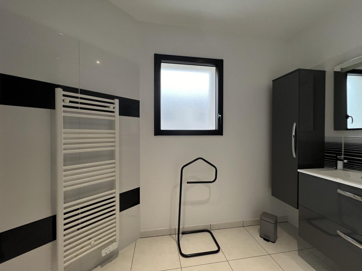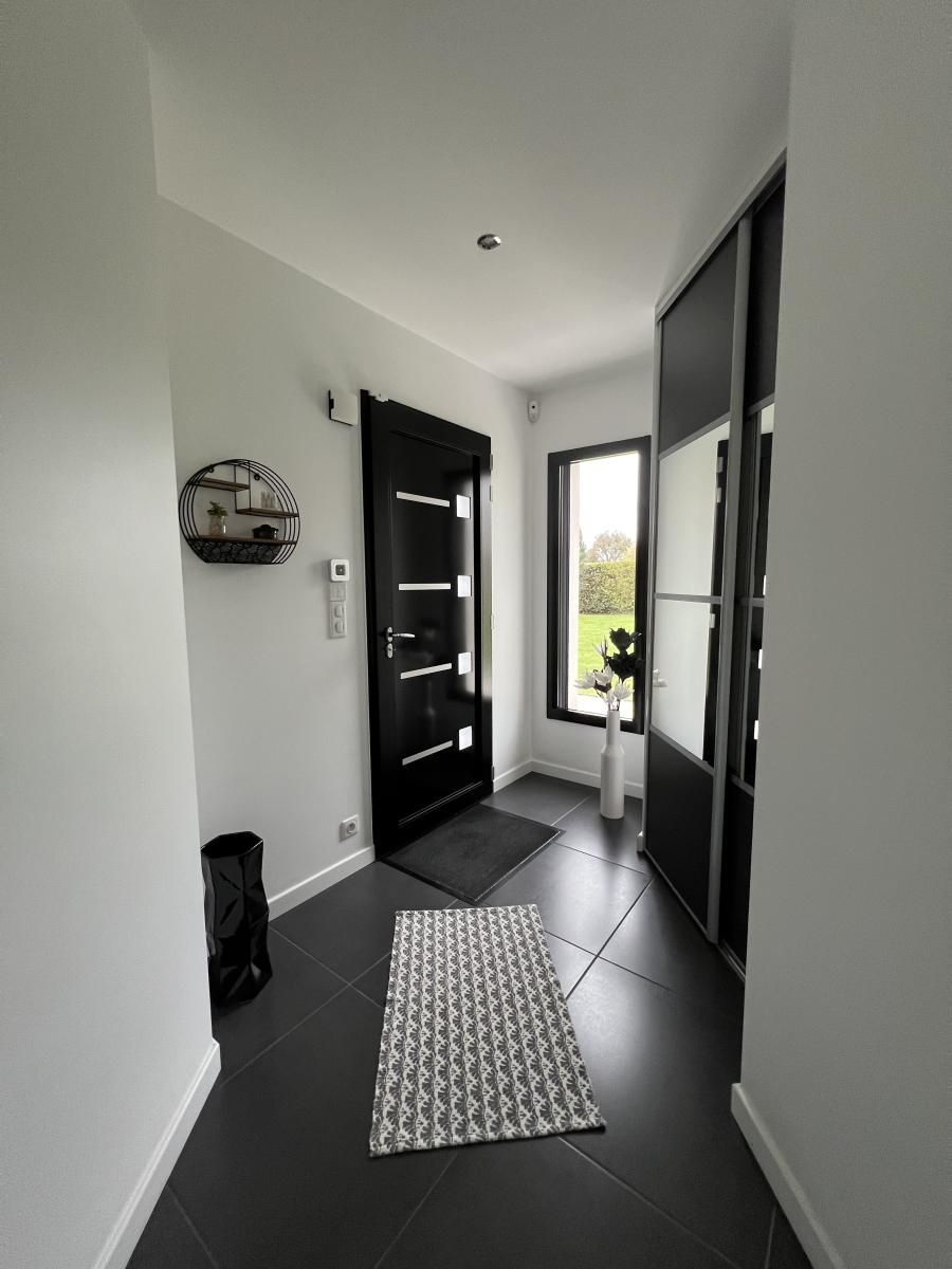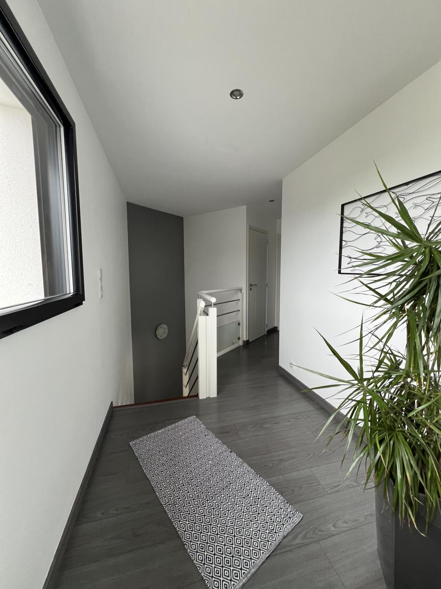 TREVENEUC - côté Mer, Maison contemporaine de 2013 sur terrain de 1823 m², comprenant : Hall d'entrée avec placard, wc avec lave-mains, suite parentale : sas avec placards, salle d'eau, chambre, cuisine aménagée et équipée ouverte sur séjour-salon VUE MER, arrière-cuisine aménagée, chaufferie, garage double. A l'étage : palier, trois chambres dont deux avec VUE MER, salle de bains baignoire et douche, wc. Terrasse, garage double, jardin paysagé, chauffage géothermie, proche mer.