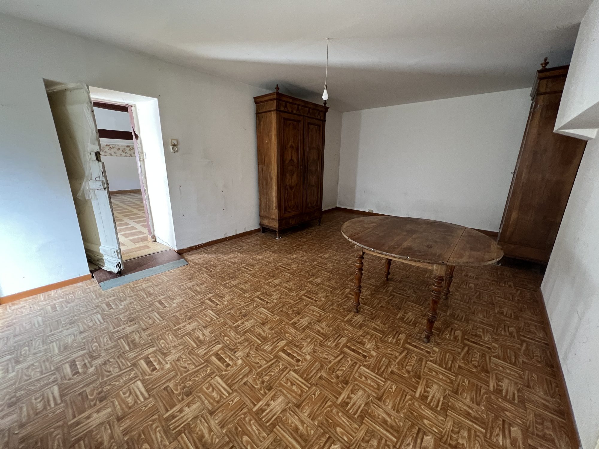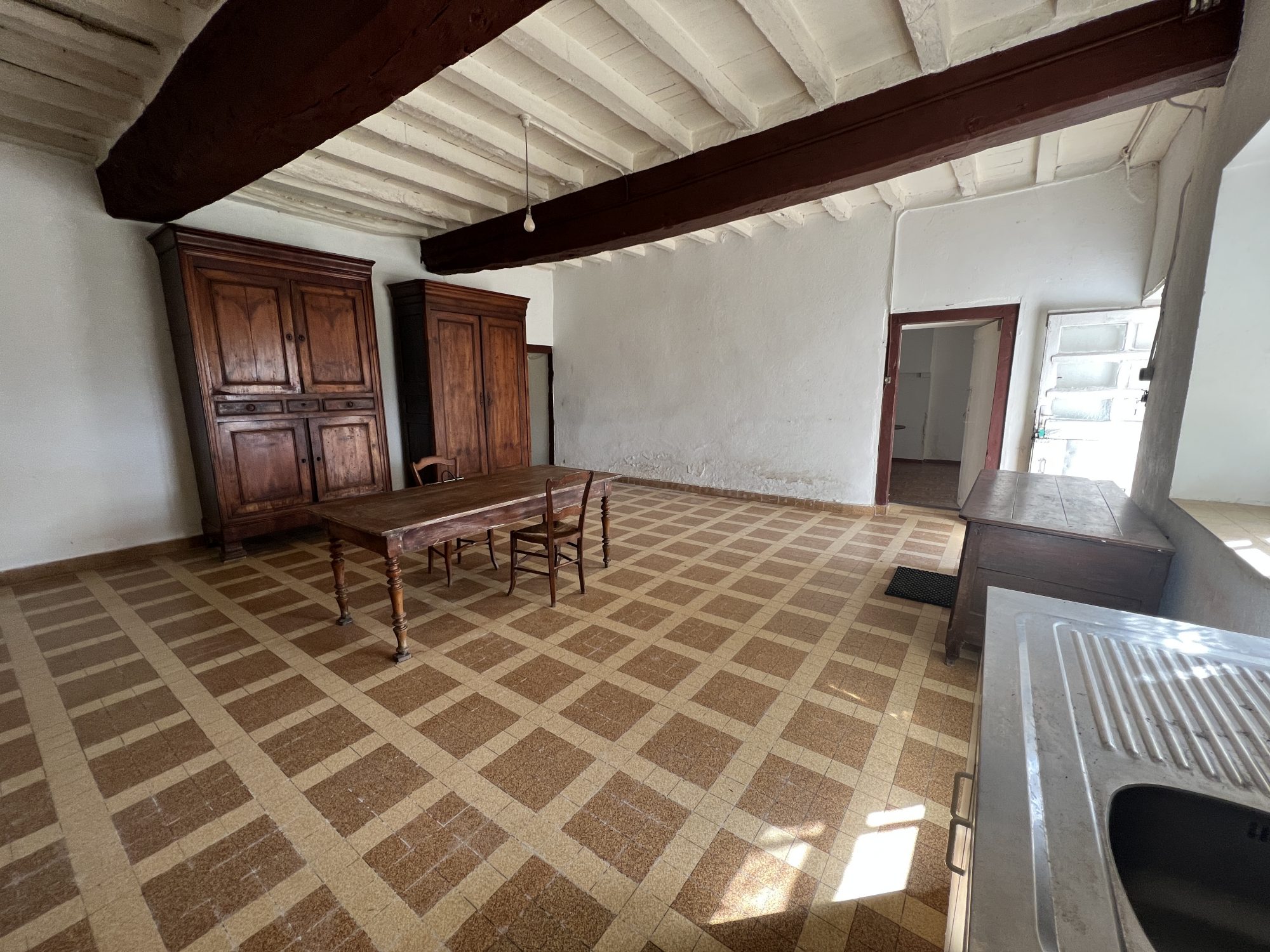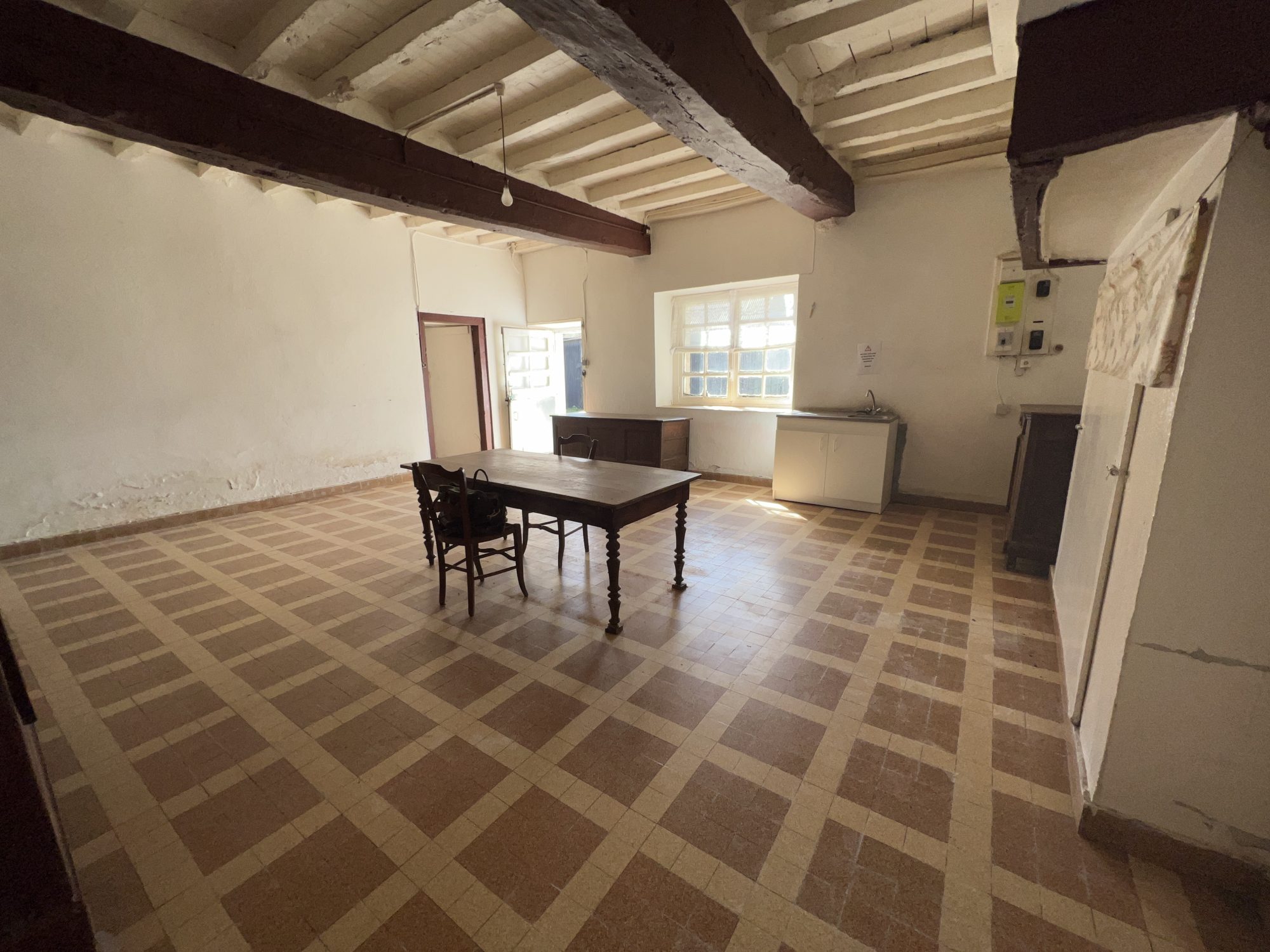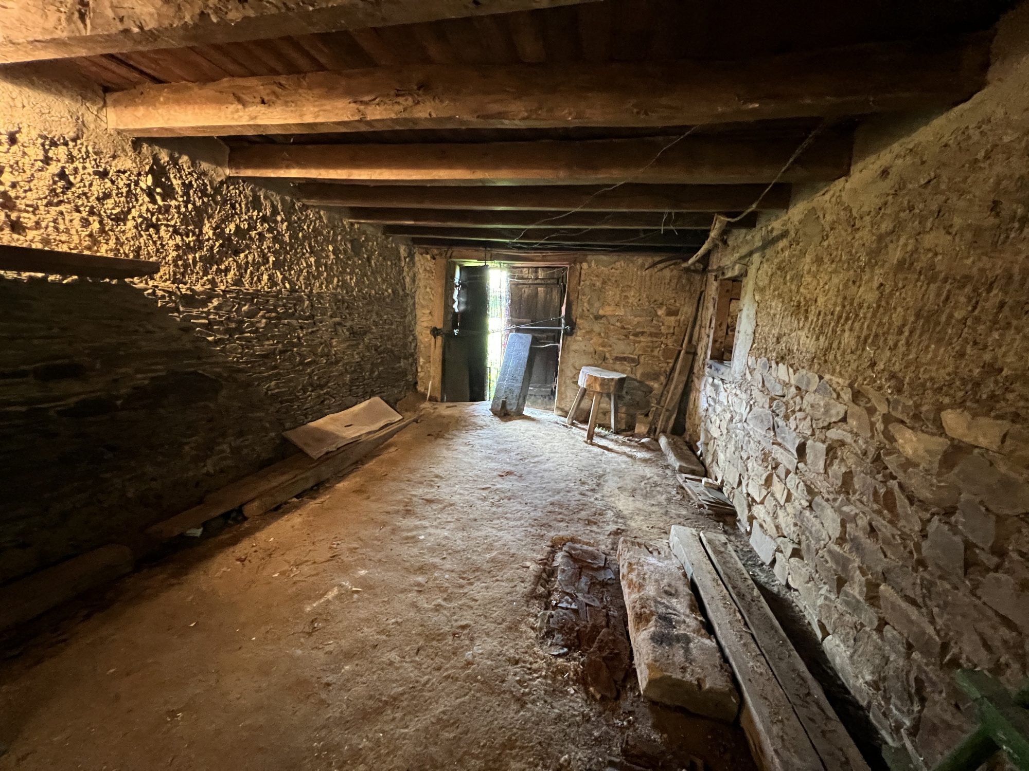 La bâtisse principale comprend deux pièces d’habitation orientées Sud d’environ 40 m² et 25 m², avec grenier au-dessus. Un cellier attenant à l’arrière d’environ 45 m² complète cette partie.
