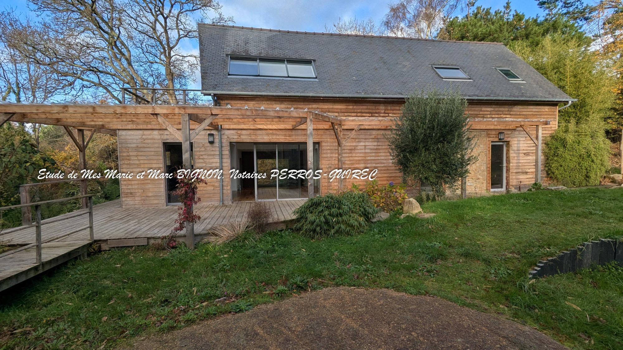 Sous compromis : Située au cœur du cadre sublime de la vallée Traouieros, accessible par un chemin, unique dans son style, Maison en ossature bois de 2008, lumineuse. Chaque fenêtre est une ouverture sur la nature et l'intérieur est conçu comme un loft, elle se compose ; entrée par une coursive extérieure, au rez de chaussée une grande pièce avec cuisine équipée, poêle à bois, couloir, deux chambres avec salle d'eau accessible commune au deux ch., wc, buanderie, atelier, terrasses, à l'étage, une grande chambre avec salle d'eau privée, wc, 2ème salon, terrasse, le jardin aménagé, planté de bambous et plantes exotiques ravira les amateurs et passionnés. Les informations sur les risques auxquels ce bien est exposé sont disponibles sur le site Géorisques : georisques.gouv.fr