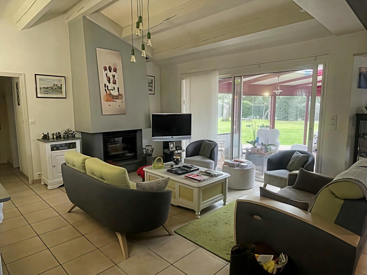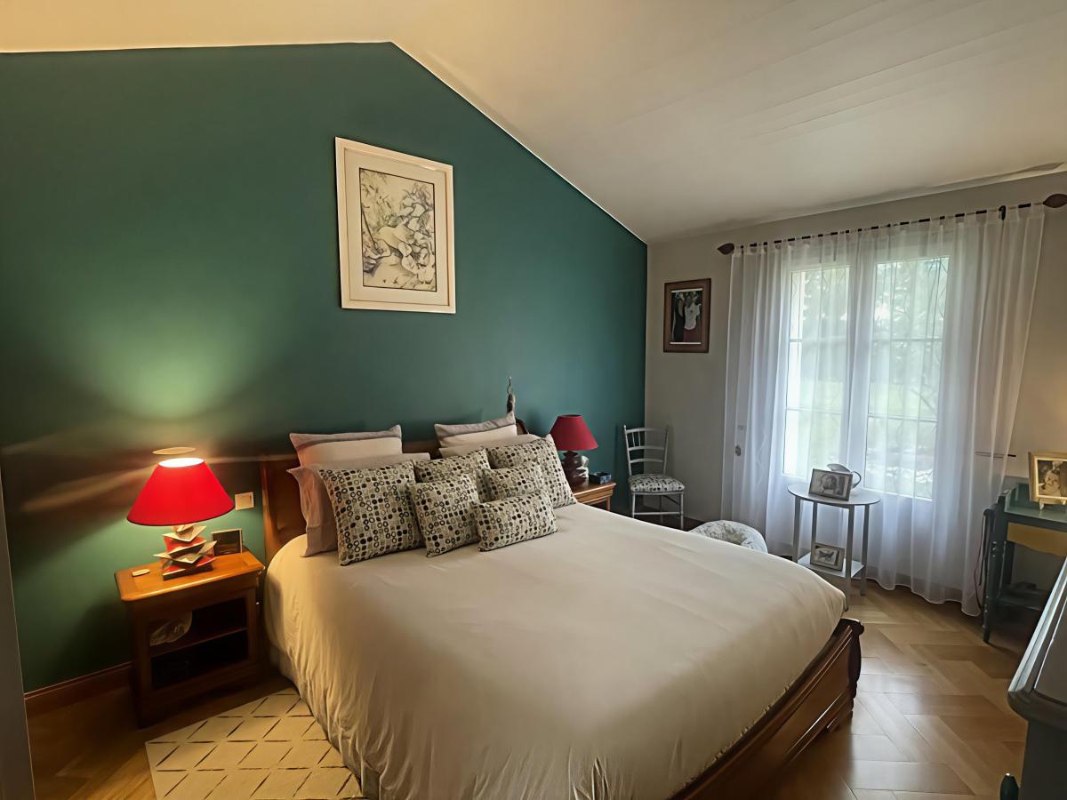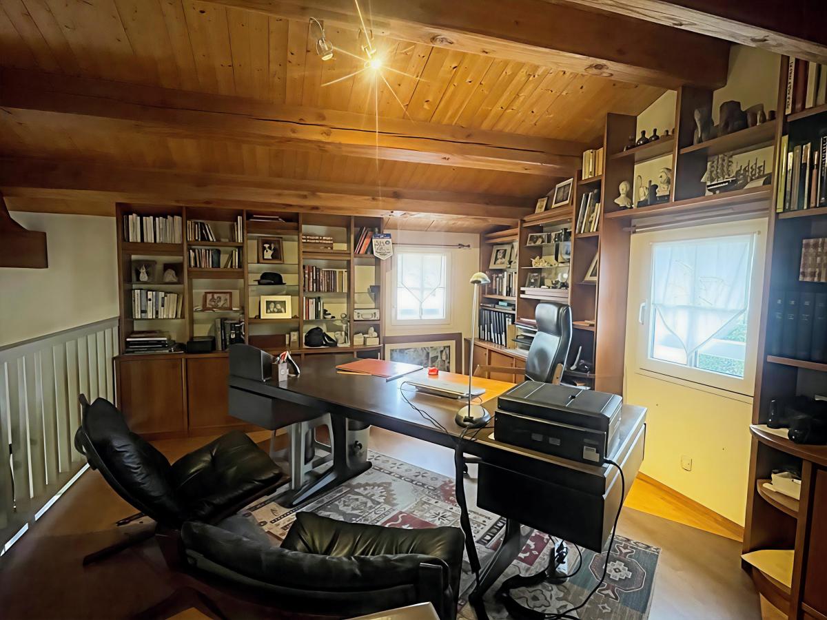 Une entrée, une cuisine aménagée et équipée (plaque gaz, four, micro-ondes, lave-vaisselle, réfrigérateur, hotte, évier), une arrière cuisine, un grand salon/séjour avec cheminée, une véranda avec vue dégagée sur le jardin, un dégagement avec placard, une suite parentale avec salle d'eau (douche, baignoire, double vasque et wc) dressing + placard sur parquet massif, un second coin nuit avec deux chambres avec salle d'eau commune, un wc. Une grande mezzanine.