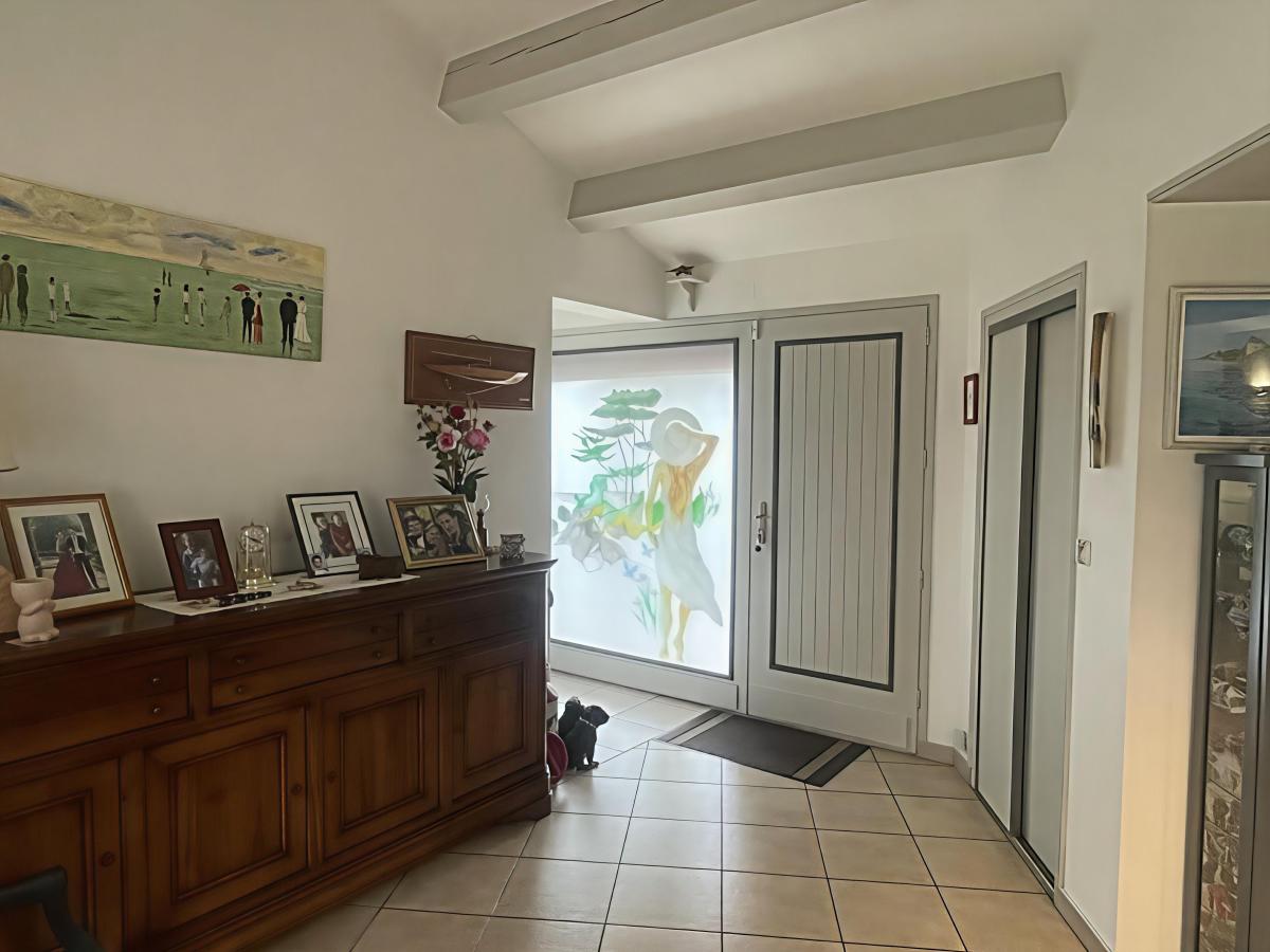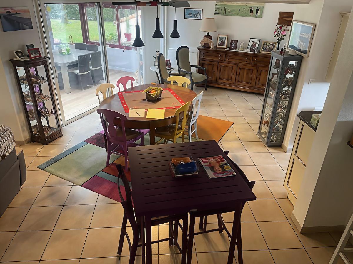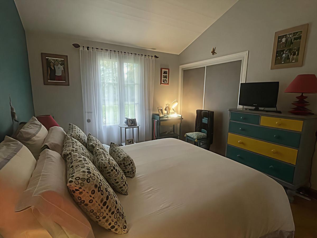 Une entrée, une cuisine aménagée et équipée (plaque gaz, four, micro-ondes, lave-vaisselle, réfrigérateur, hotte, évier), une arrière cuisine, un grand salon/séjour avec cheminée, une véranda avec vue dégagée sur le jardin, un dégagement avec placard, une suite parentale avec salle d'eau (douche, baignoire, double vasque et wc) dressing + placard sur parquet massif, un second coin nuit avec deux chambres avec salle d'eau commune, un wc. Une grande mezzanine.