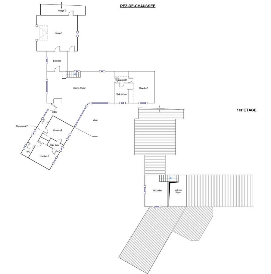 Une maison à usage d'habitation, comprenant une construction initiale avec garage en 1995, un second garage construit en 2004 et une véranda de 2009. Le système de chauffage est assuré par des convecteurs électriques avec une cheminée, une isolation par lʼextérieure.