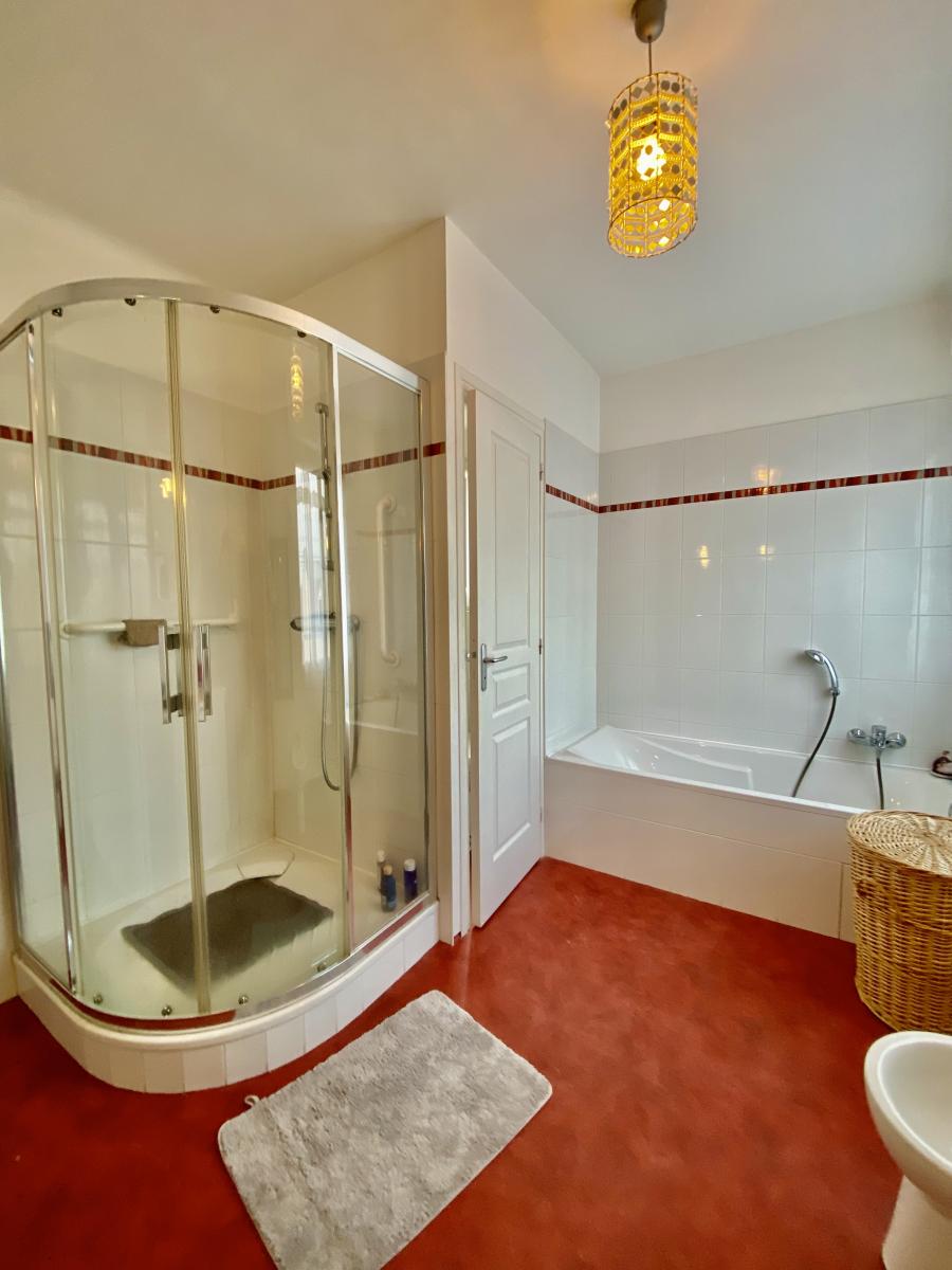 Au-dessus : un dégagement sur moquette (3 m²), une chambre sur moquette (9m²), un WC (3.27 m²) et un grand grenier facilement aménageable de 38 m².