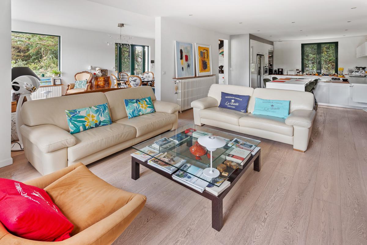 La villa, répartie sur plusieurs niveaux, offre une généreuse pièce de vie baignée de lumière ouvrant sur une terrasse plein sud, une cuisine ouverte aménagée et équipée, ainsi qu’une véranda propice à la détente (d'environ 30m²). Une partie de la maison, pouvant être indépendante, comprend deux chambres, une salle d’eau et des toilettes, idéale pour accueillir famille ou amis en toute intimité.