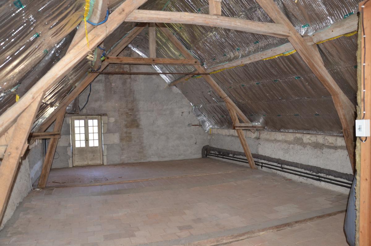 De plain-pied, l'espace jour de 73 m², 3 chambres, une salle d'eau et une grande buanderie à transformer en salle de bain. A l'étage, un grenier de 103m² à aménager.
