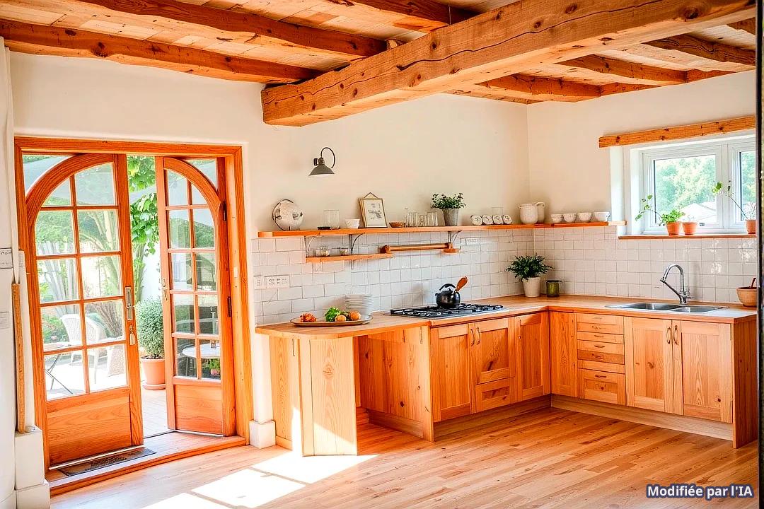 La maison principale allie confort (vie de plain-pied, pompe à chaleur, double vitrage) et tradition (cheminées, tommettes, poutres apparentes). Ouverte vers l'extérieur, elle est très lumineuse, avec un accès direct au jardin pour chaque pièce.
