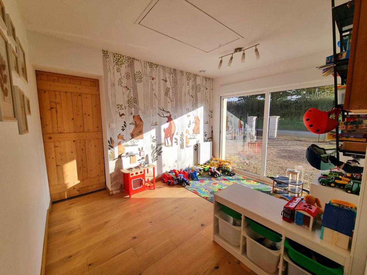 Une extension de 2024 offre un couloir de 9m², un espace salon de 21m² avec vue sur le jardin, une 2ème salle de bains de 10m², une chambre parentale de 23m² avec dressing, et une 4ème chambre de 15m².