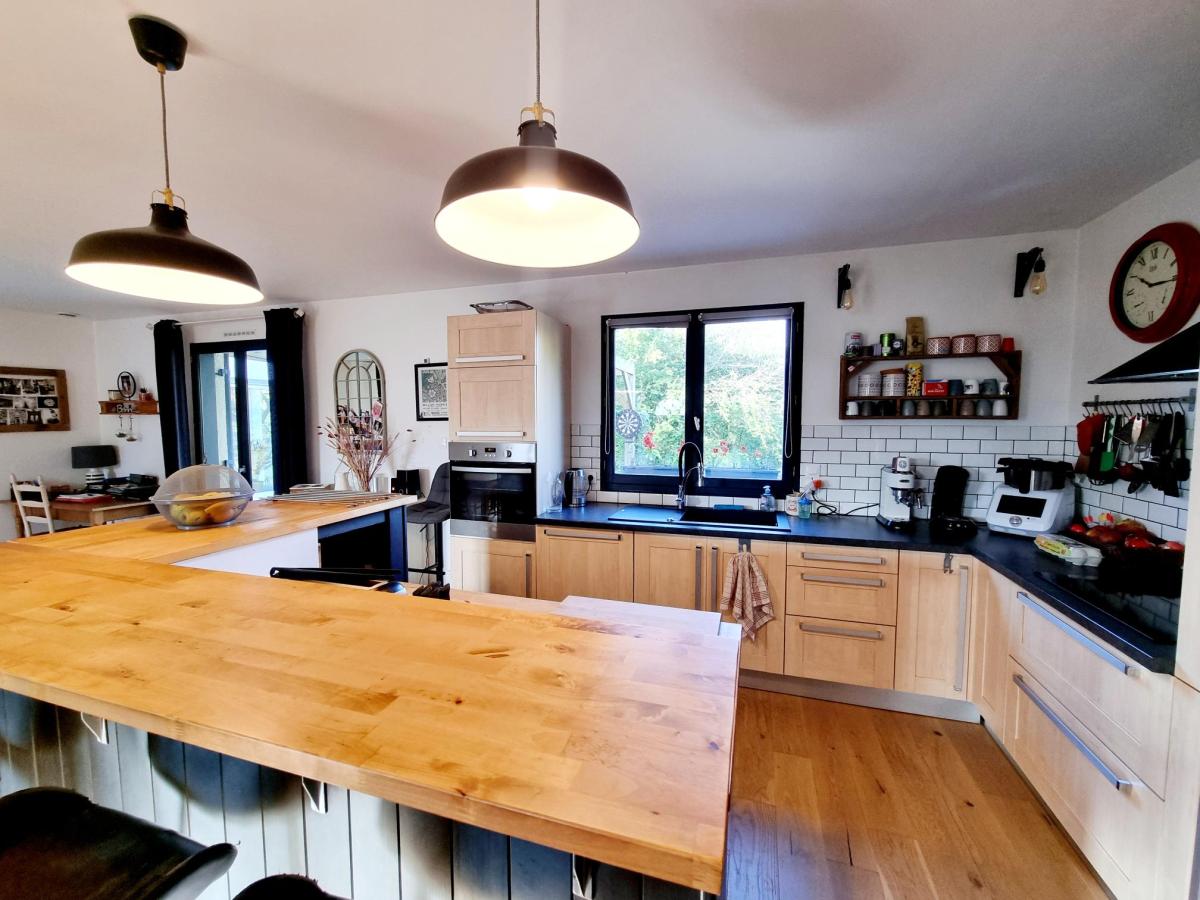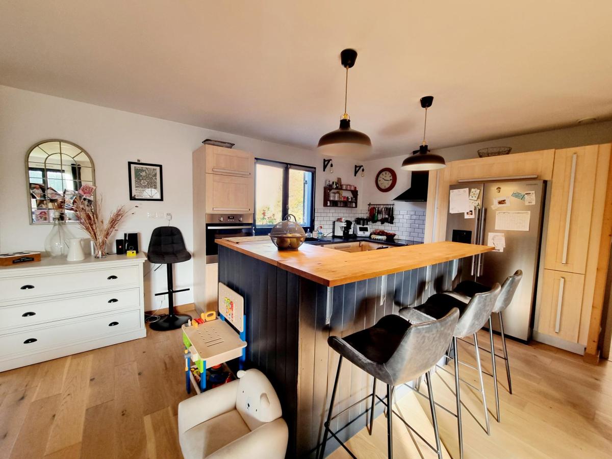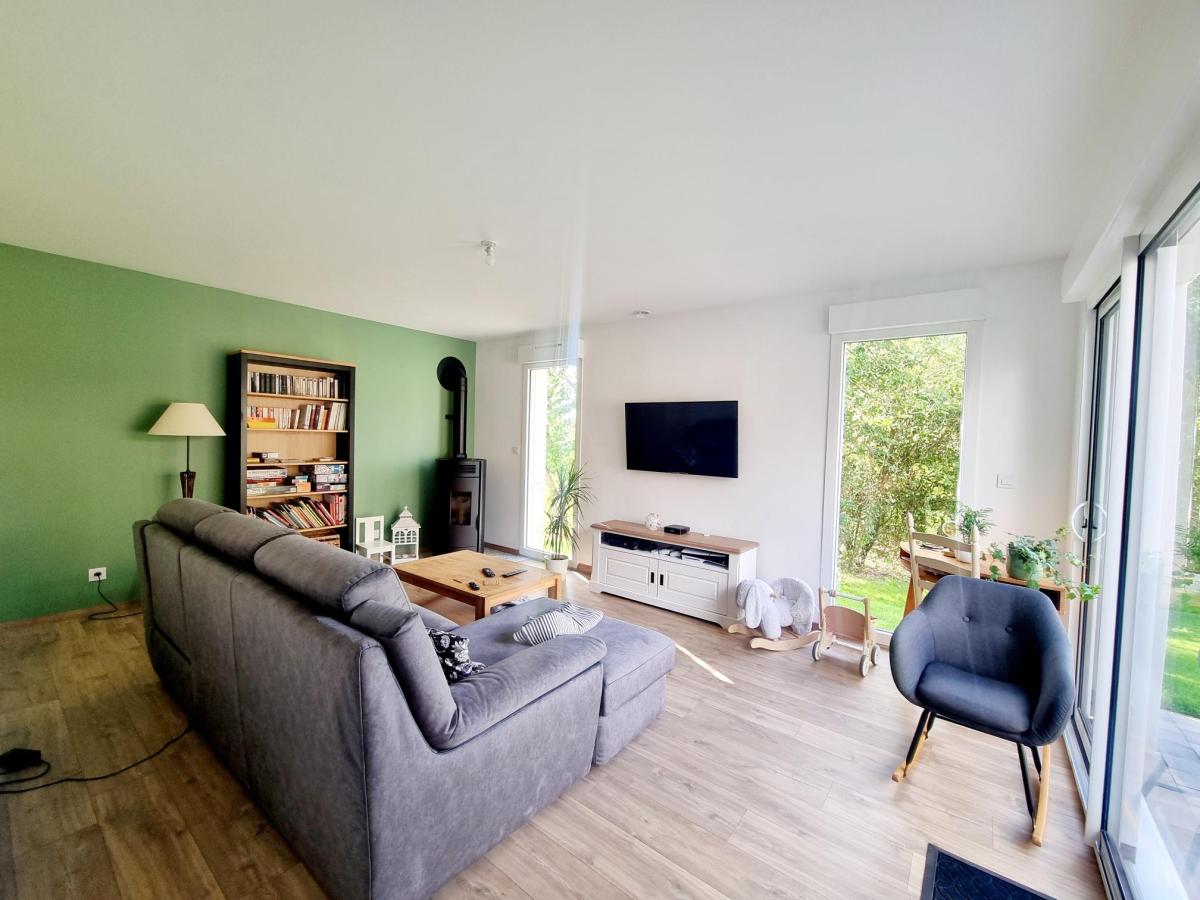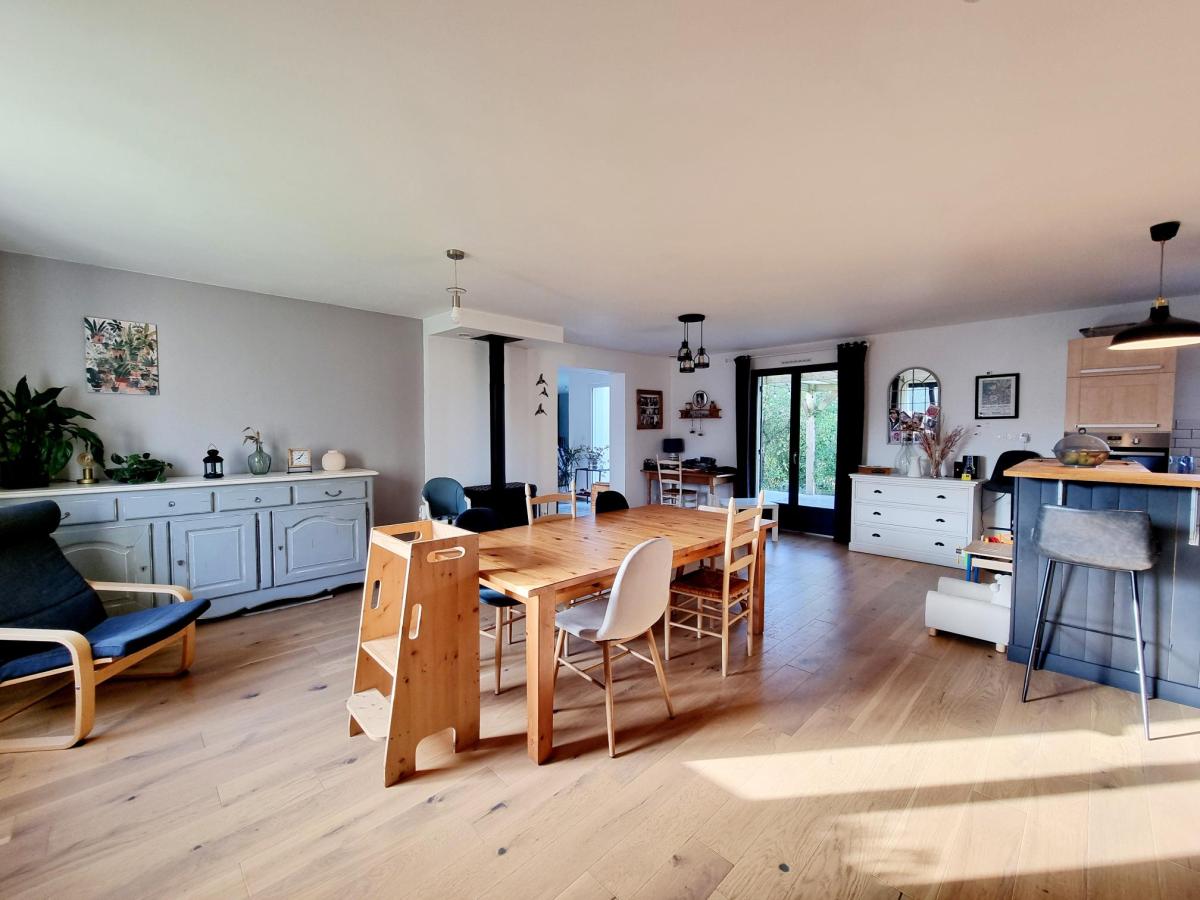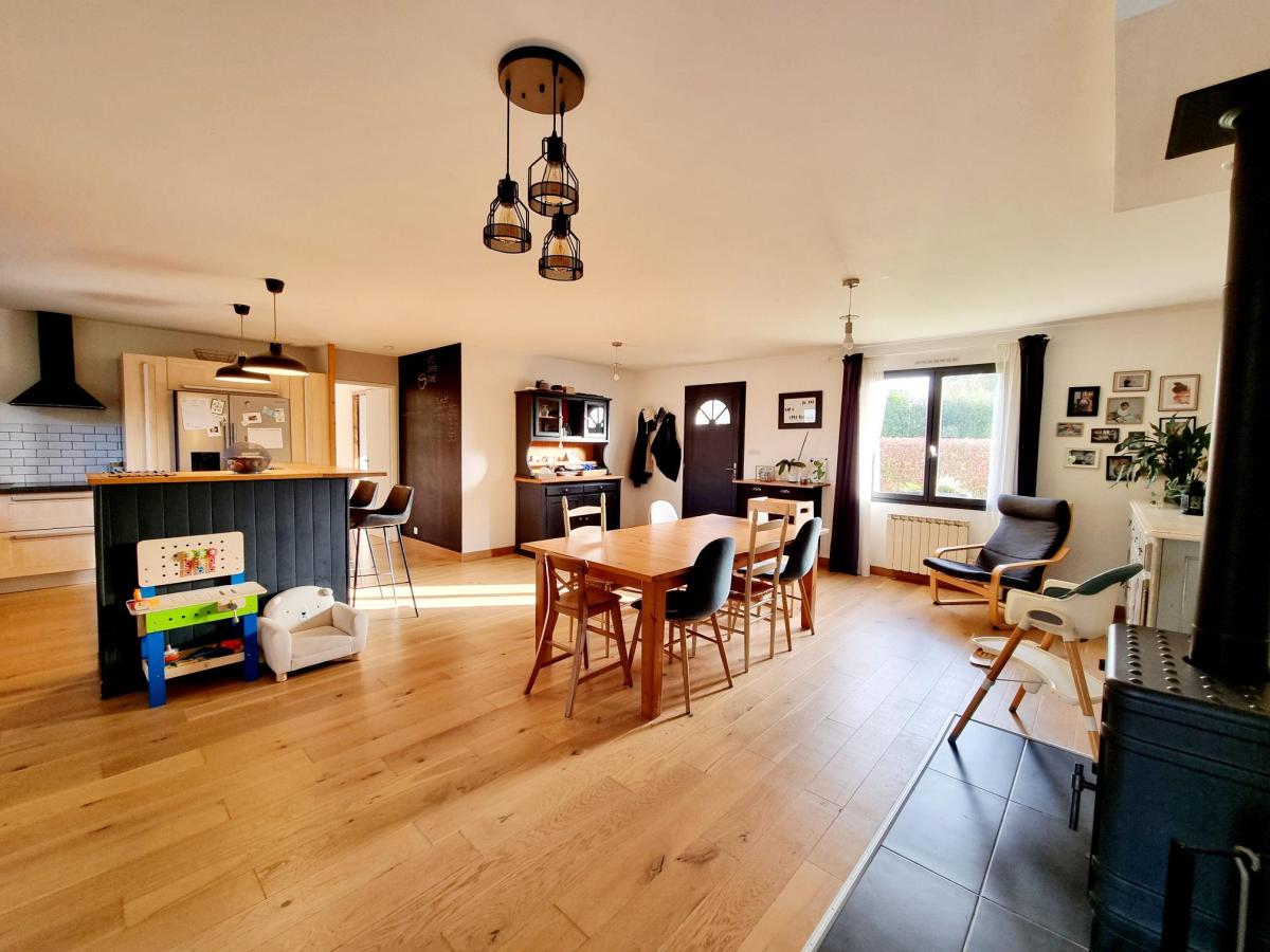 Cette grande maison entièrement de plain-pied d'une surface habitable de 180 m² se compose d'une grande pièce de vie de 41.68m² de avec cuisine aménagée et équipée, un couloir menant à un espace jeux ou bureau de 21.57m², 2 chambres de 10m² dont une avec dressing, une salle de bains et 1 WC.