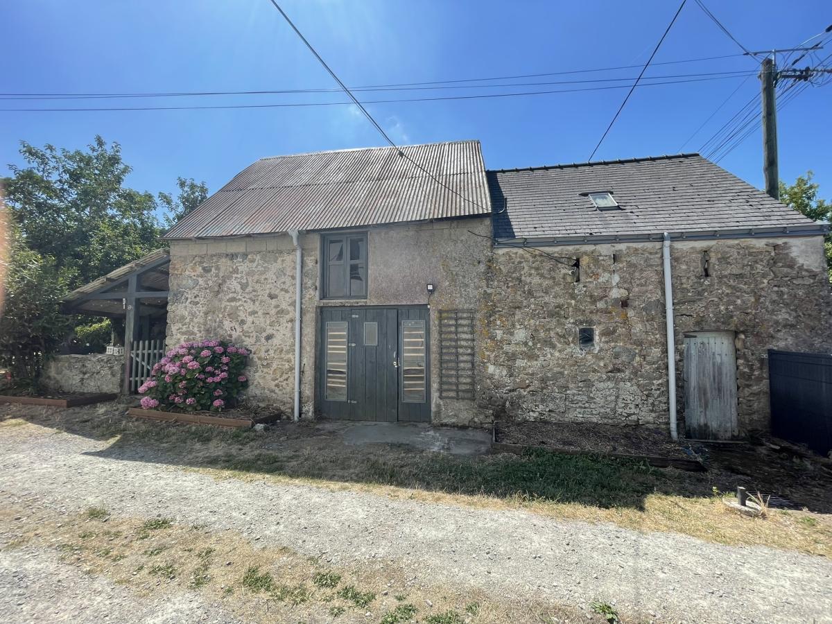 Jardin en face d'environ 150 m² avec place de stationnement et grange en pierre d'environ 70 m² au sol avec grenier au-dessus (CU positif pour un changement de destination en habitation et une rénovation).