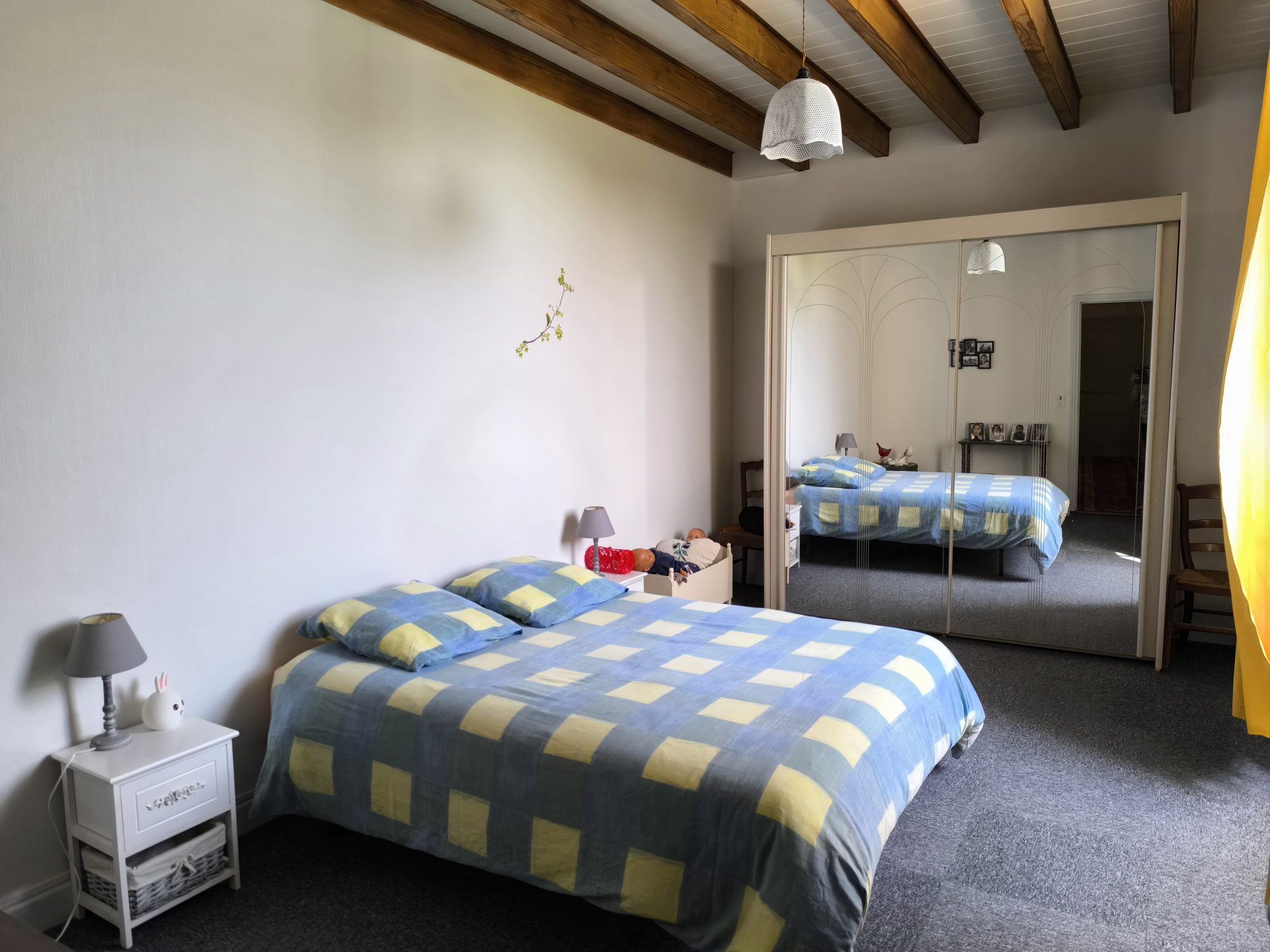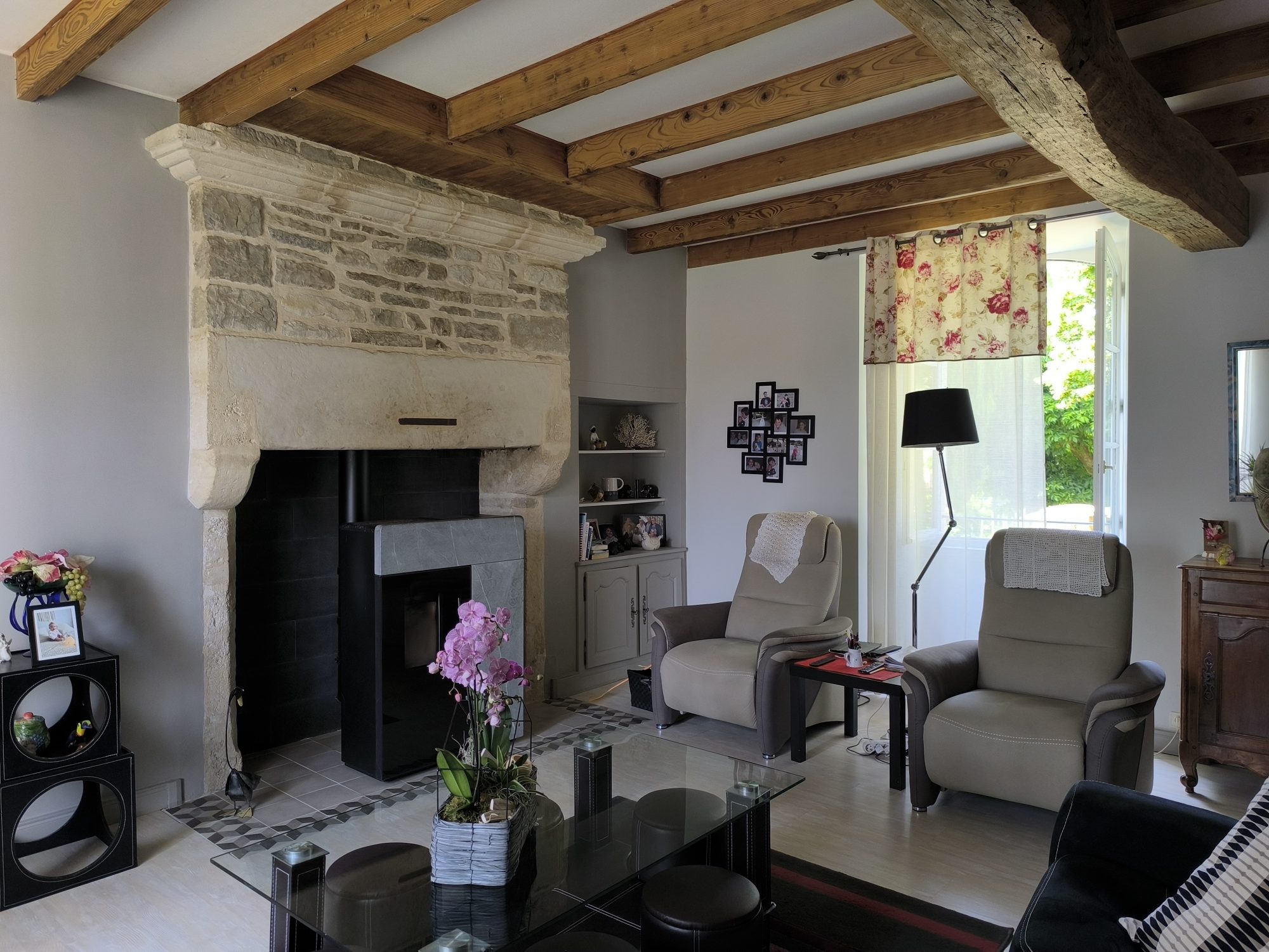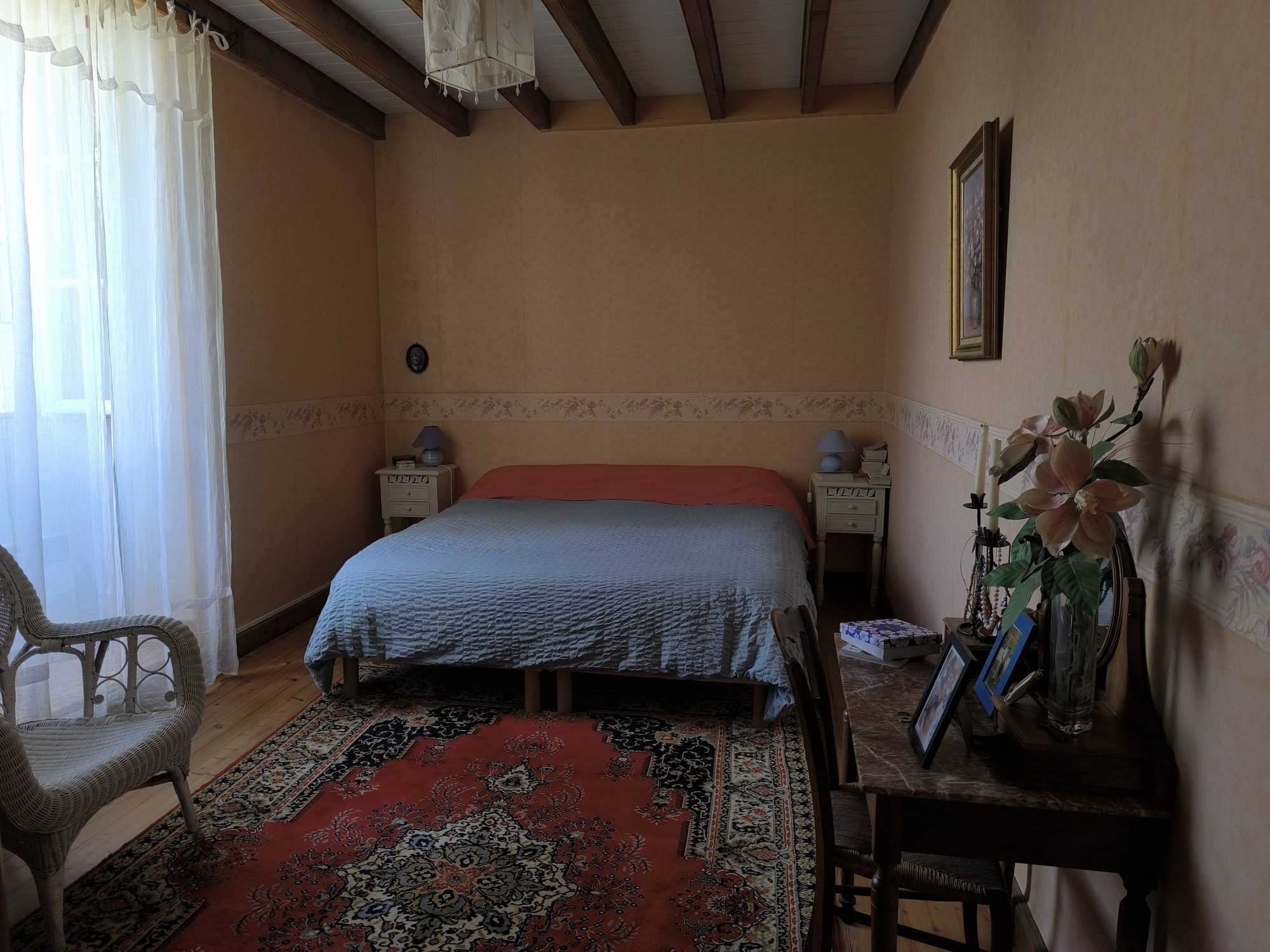 Sous compromis : Dans un hameau, très très jolie maison 'bourgeoise' de 186 m² habitables rénovée avec beaucoup de goût. Le rez-de-chaussée est scindé en deux grands volumes, la cuisine ouvrant sur une terrasse face au parc, le salon parqueté avec cheminée et poêle à granulés. En rez-de-jardin, bureau, lingerie, wc et cave. A l'étage, un palier dessert quatre belles chambres, une salle d'eau et un wc. Appentis attenant à la cuisine s'il fait trop chaud, et garage. Cour et parc arboré de presque un hectare.