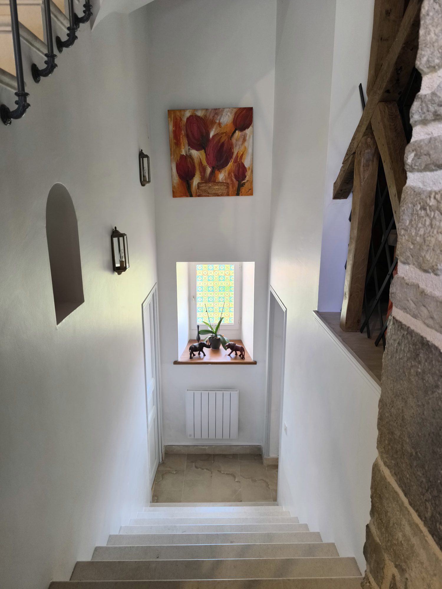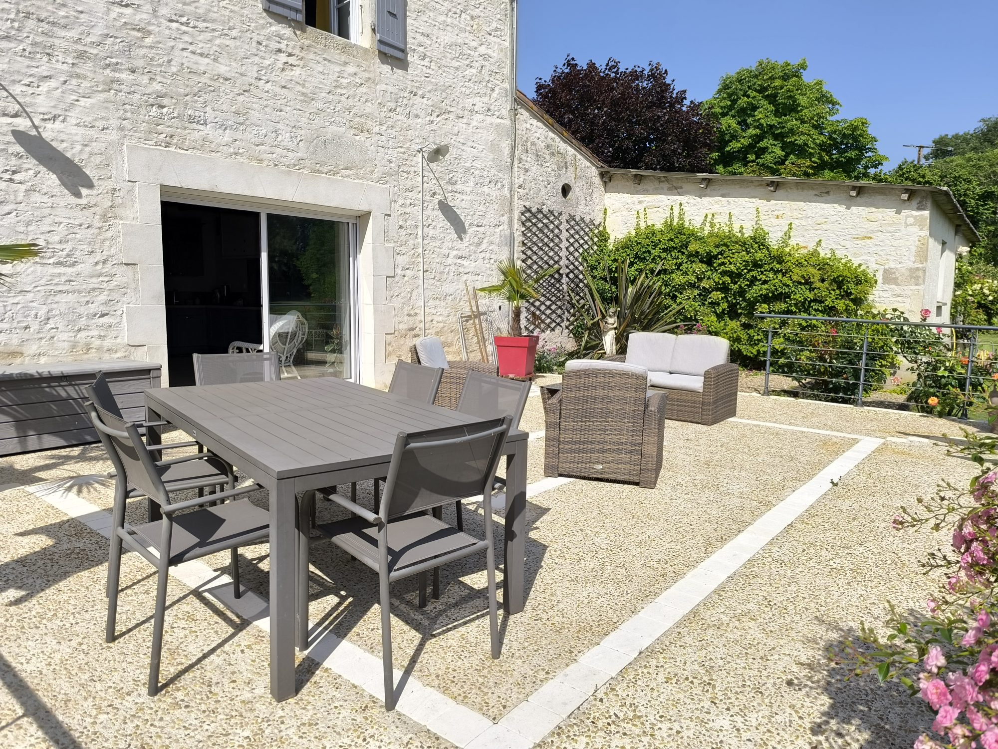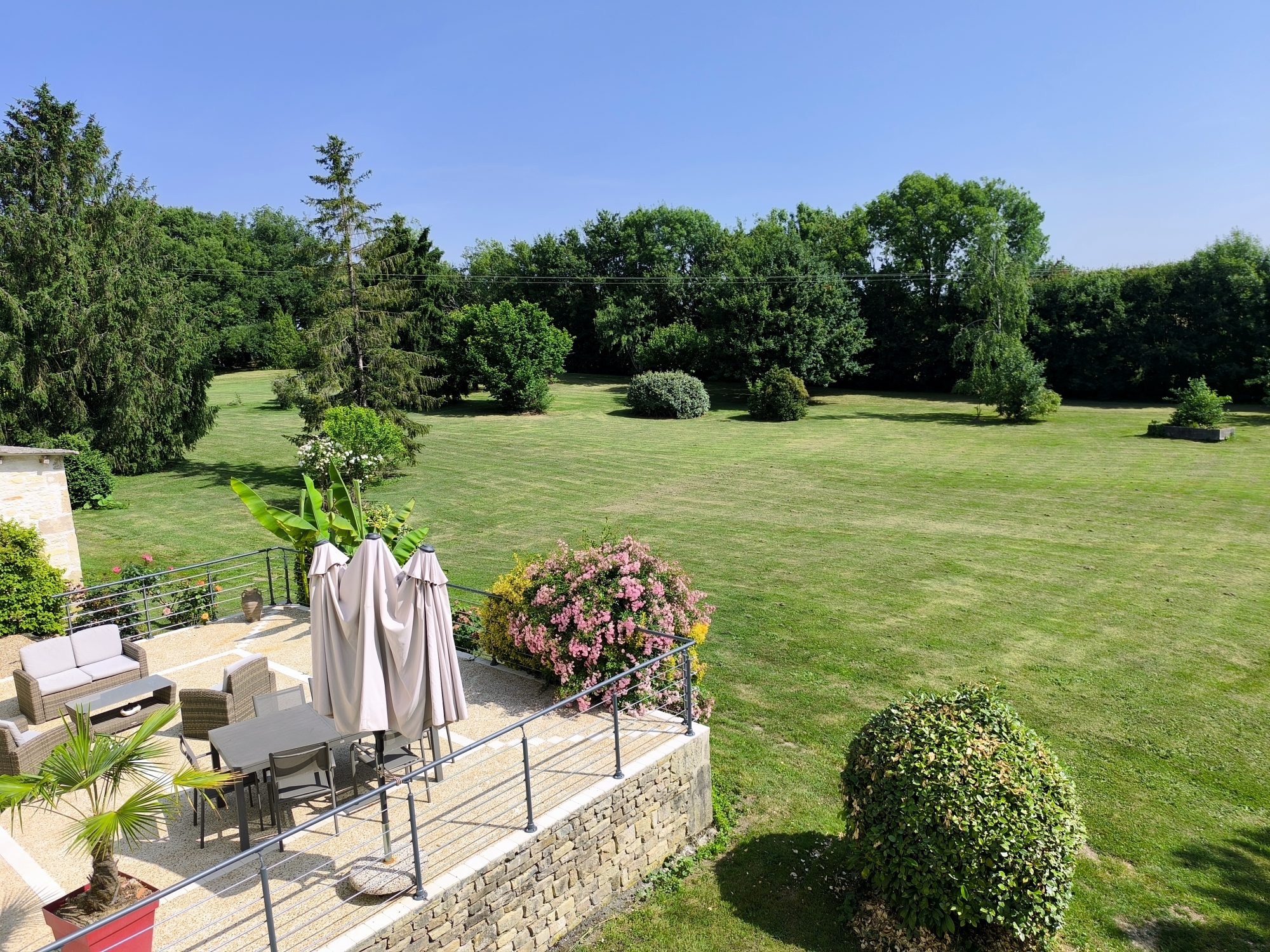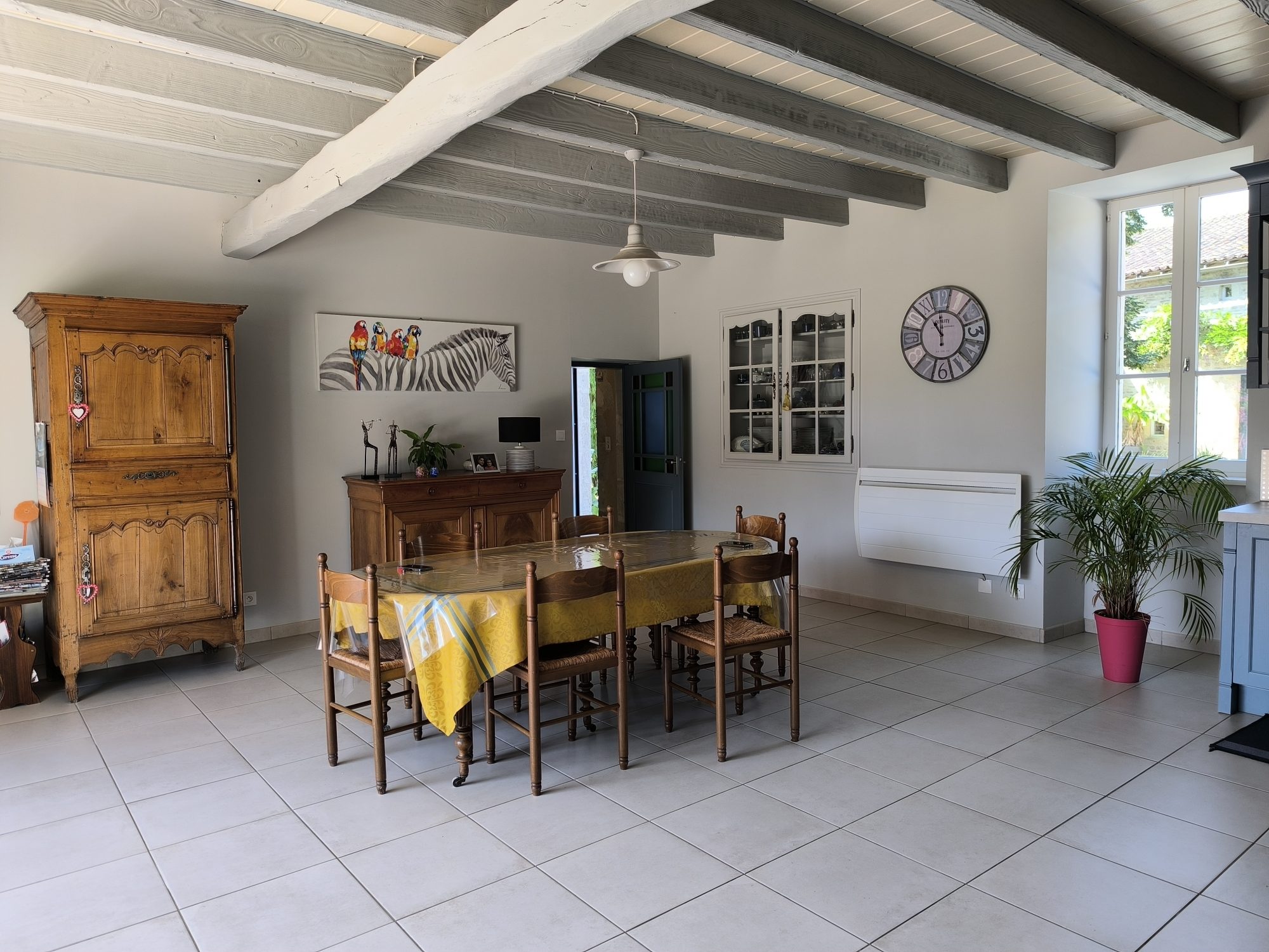 Sous compromis : Dans un hameau, très très jolie maison 'bourgeoise' de 186 m² habitables rénovée avec beaucoup de goût. Le rez-de-chaussée est scindé en deux grands volumes, la cuisine ouvrant sur une terrasse face au parc, le salon parqueté avec cheminée et poêle à granulés. En rez-de-jardin, bureau, lingerie, wc et cave. A l'étage, un palier dessert quatre belles chambres, une salle d'eau et un wc. Appentis attenant à la cuisine s'il fait trop chaud, et garage. Cour et parc arboré de presque un hectare.