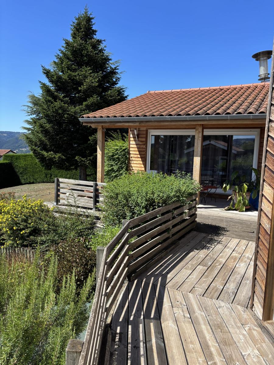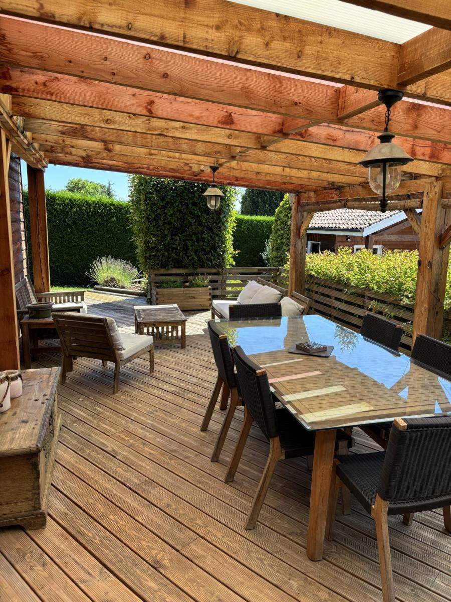 Villa de Standing en bardage bois avec piscine sans vis à visDécouvrez cette superbe villa de standing, construite en 1998, offrant un cadre de vie exceptionnel et une surface habitable de 200 m². Située dans un environnement paisible avec une vue imprenable sur la campagne, cette propriété allie modernité et charme intemporel.Au rez-de-chaussée, vous serez séduit par le vaste séjour de 65 m², baigné de lumière naturelle grâce aux grandes ouvertures en bois à double vitrage. La cuisine, aménagée et équipée, est un véritable espace de vie convivial. Une suite parentale avec un accès direct sur le jardin est un atout majeur.Le jardin de 1513 m² est un véritable havre de paix, idéal pour les journées ensoleillées. La piscine ajoute une touche de luxe et de fraîcheur pendant les chaudes journées d'été.Cette villa, en excellent état, dispose d'un chauffage individuel et d'un assainissement conforme. Le stationnement intérieur pour deux voitures et la terrasse de 31 m² complètent ce tableau idyllique.À proximité, vous trouverez plusieurs commodités : une maternelle et une école élémentaire à 5 min en voiture, des collèges à 10 min, ainsi que plusieurs restaurants et magasins d'alimentation à 5 et 10 min en voiture. Les amateurs de nature apprécieront les parcs et jardins à 10 min. Pour les urgences, des hôpitaux sont accessibles à 25 min en voiture.Ne manquez pas cette opportunité de vivre dans une villa de standing, où chaque détail a été pensé pour votre confort et votre bien-être.